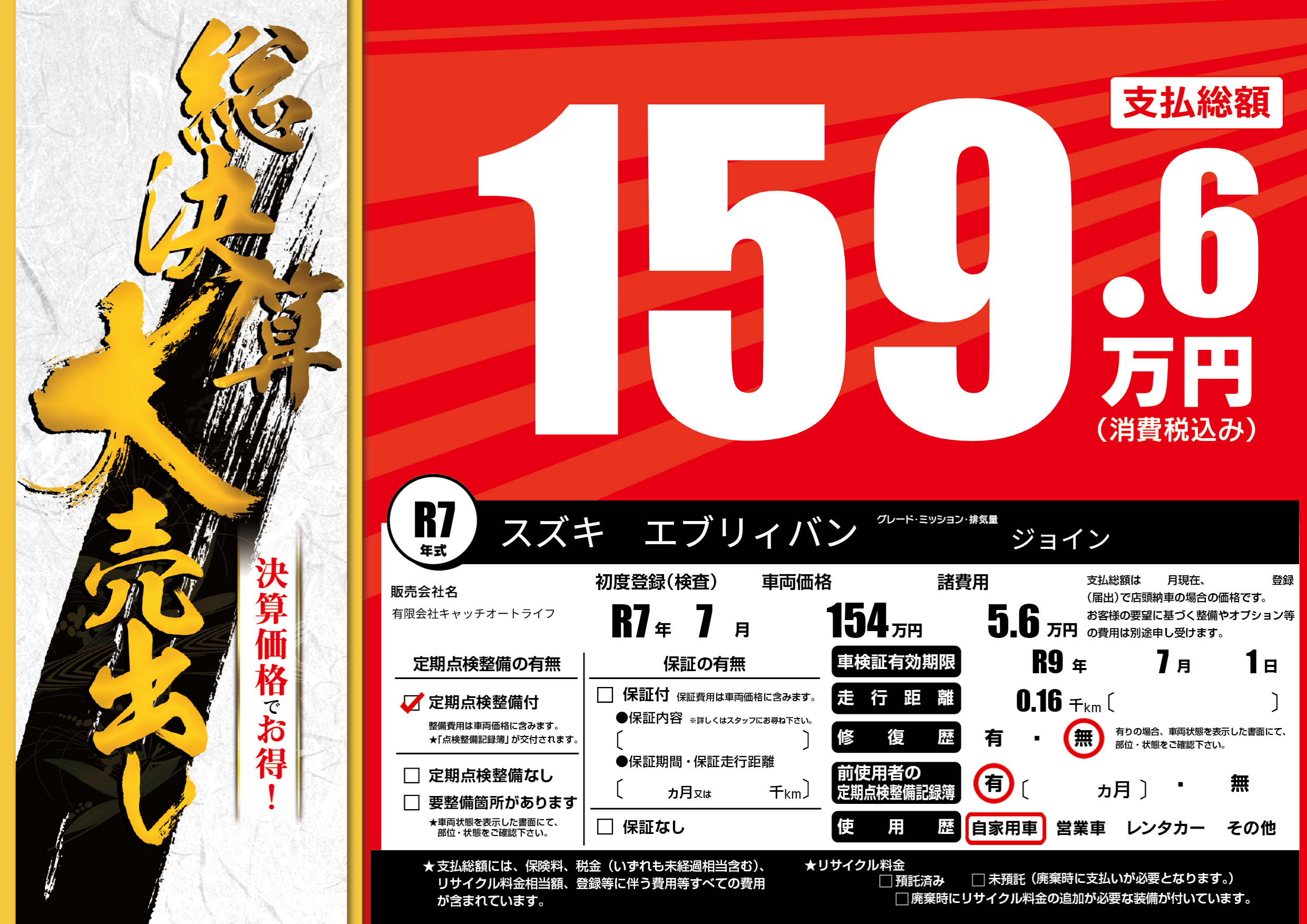 なし | 車検制限 | R9年7月1月 |