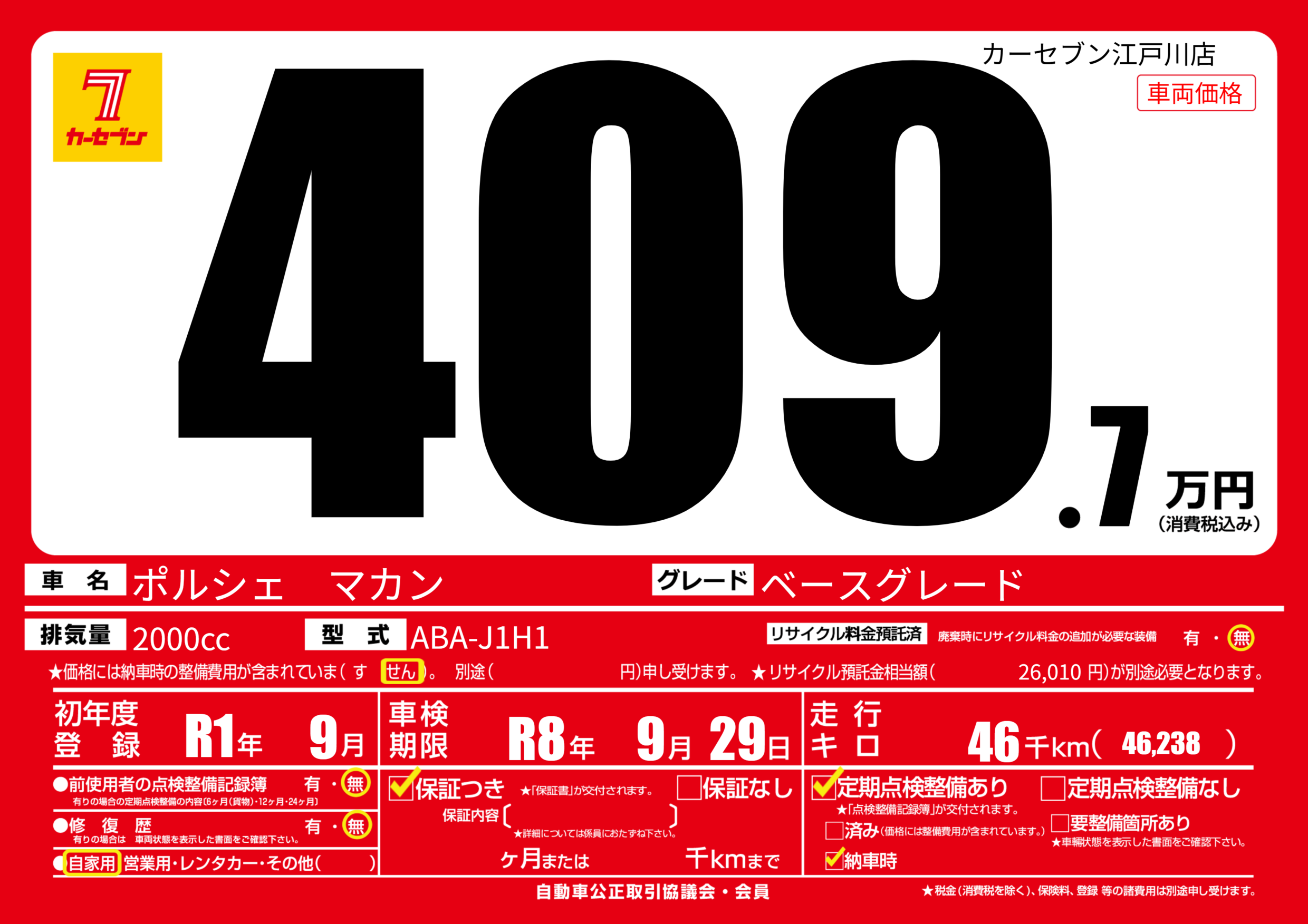 | リサイクル料金 預託済 |