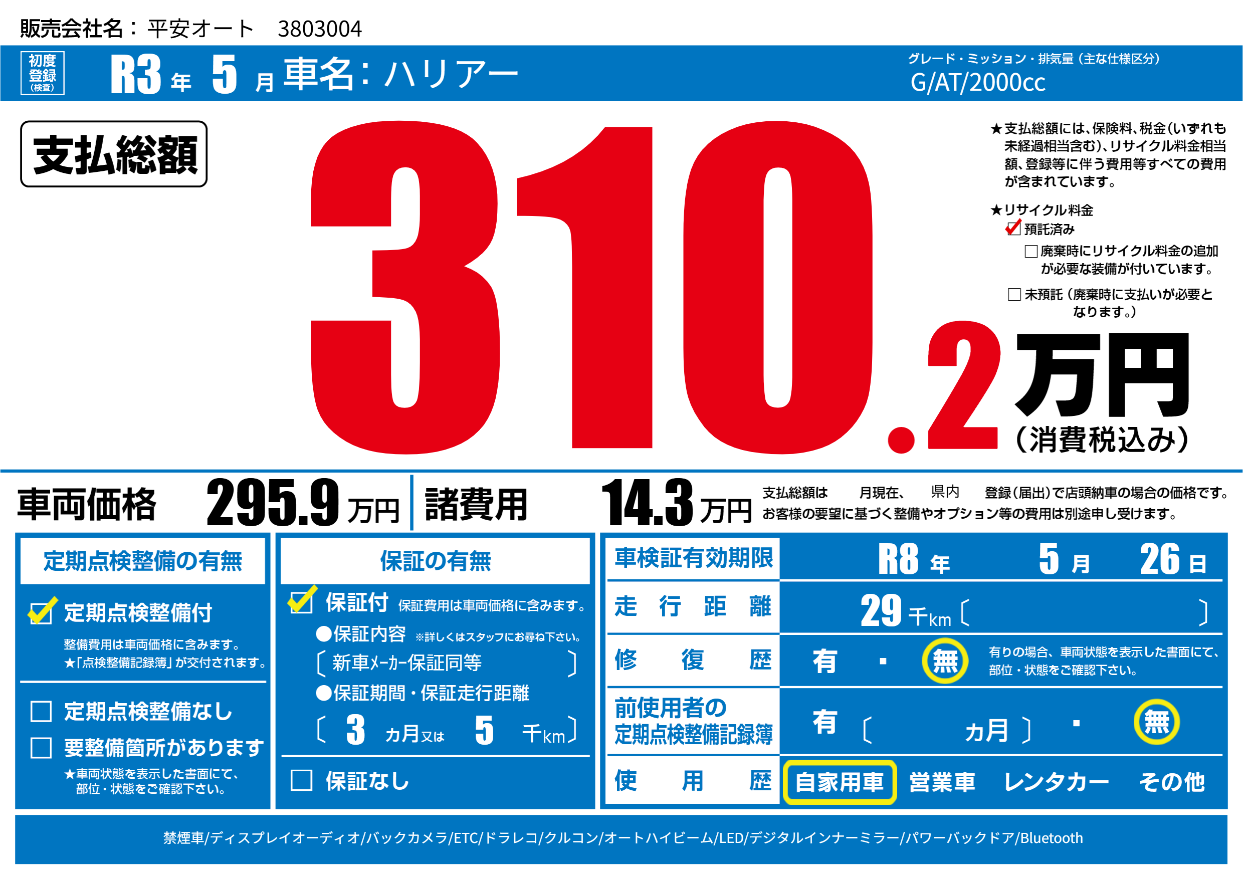 なし | 車検制限 | R8年5月26月 |