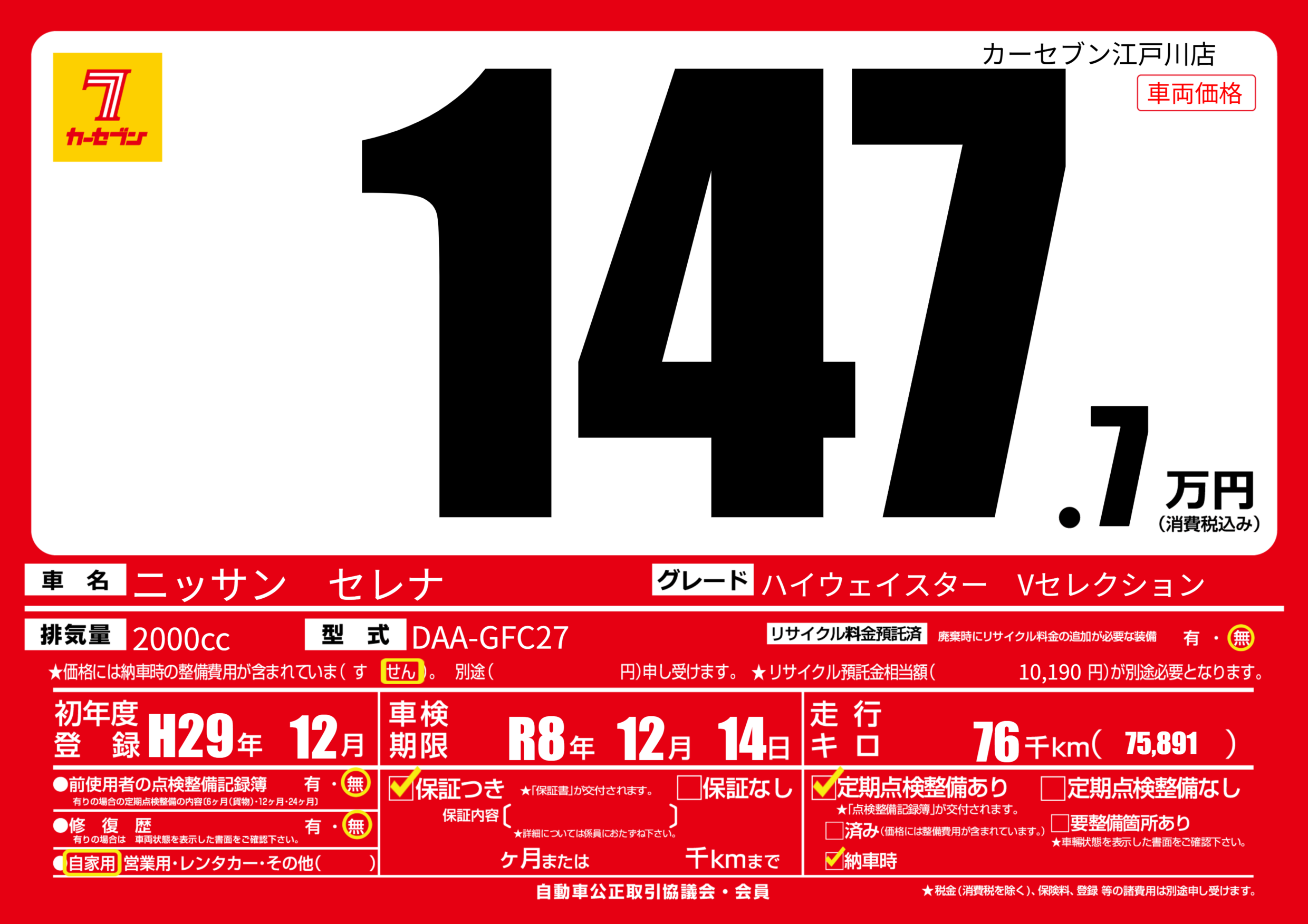 | 走行キロ | 7.6万km | ||