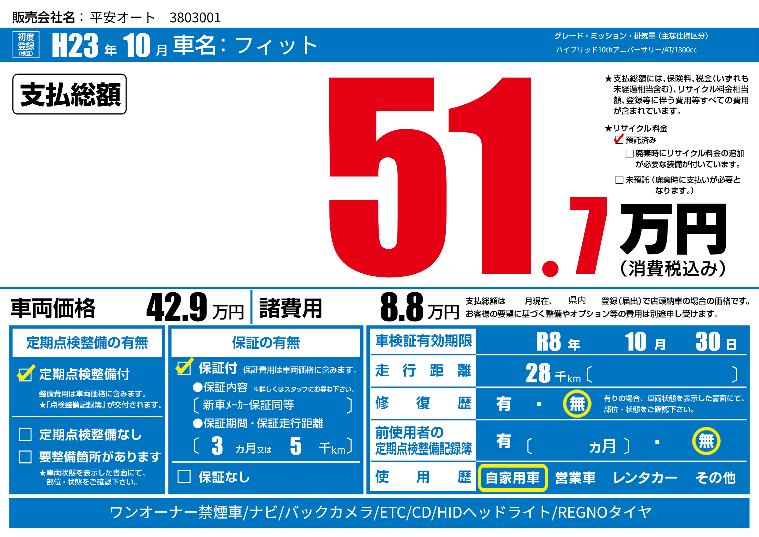 なし | 車検制限 | R8年10月30月 |