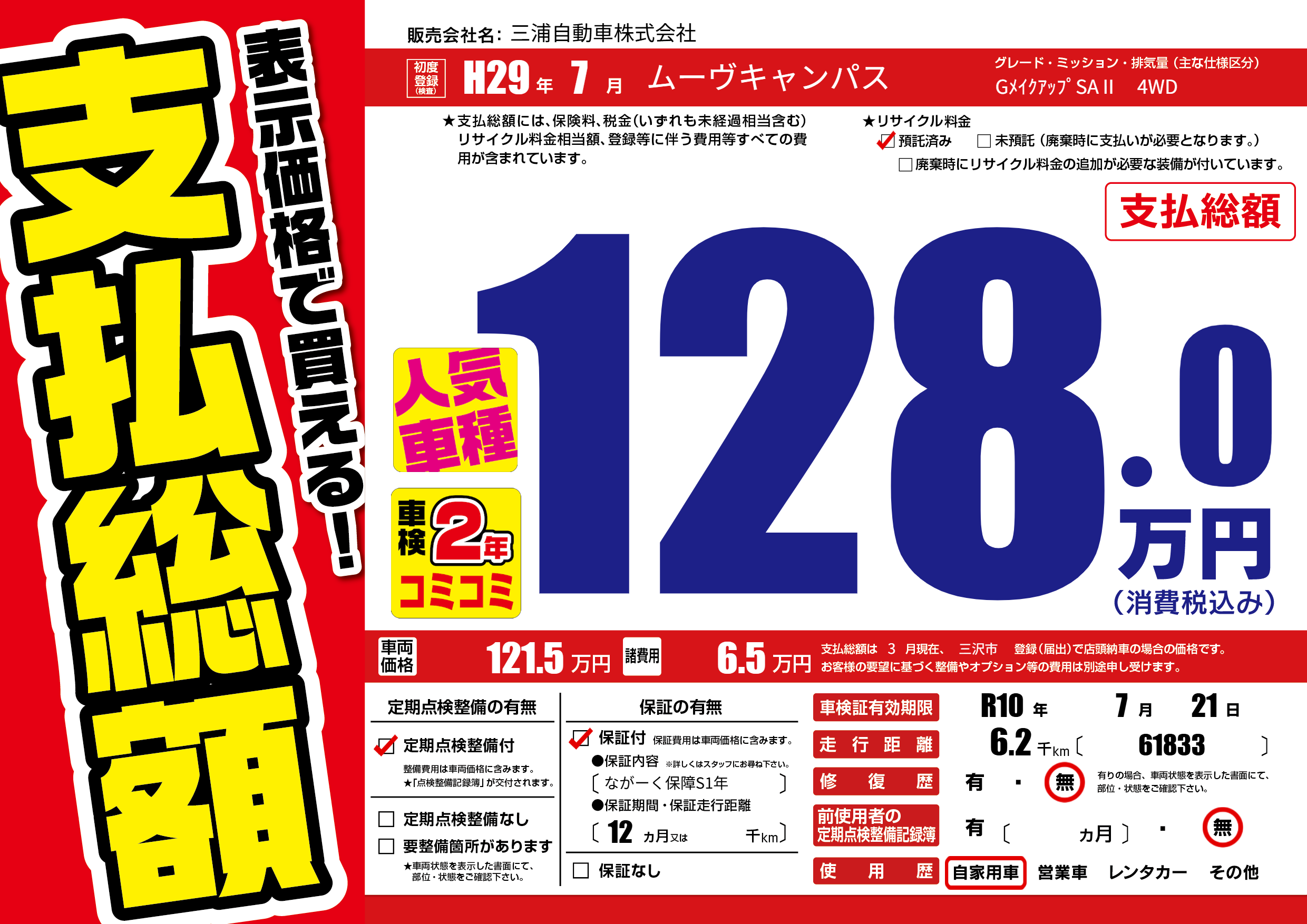 なし | 車検制限 | R10年7月21月 |