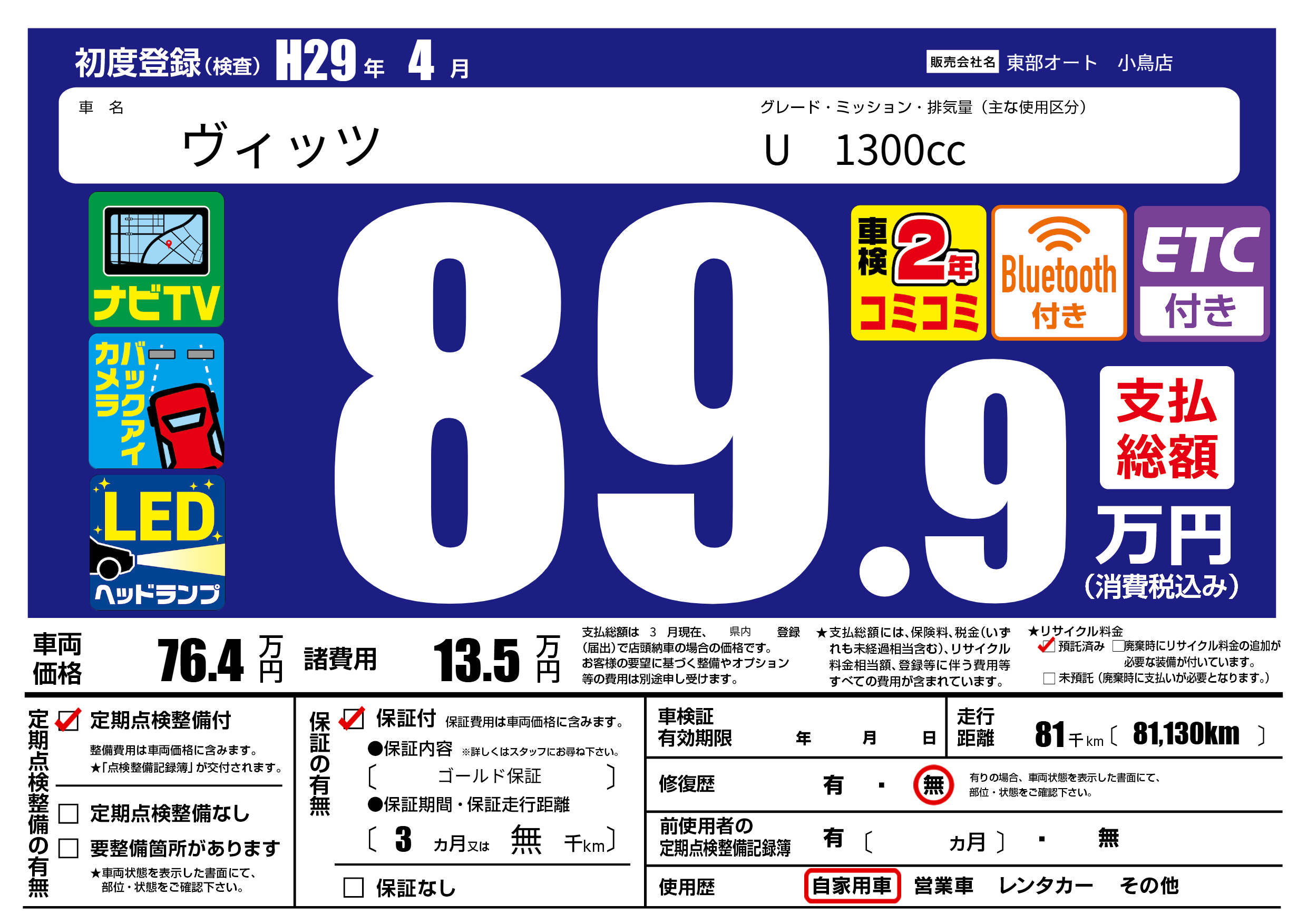 保証付き 保証内容( ゴールド保証) 3ヶ月または(無)千kmまで |