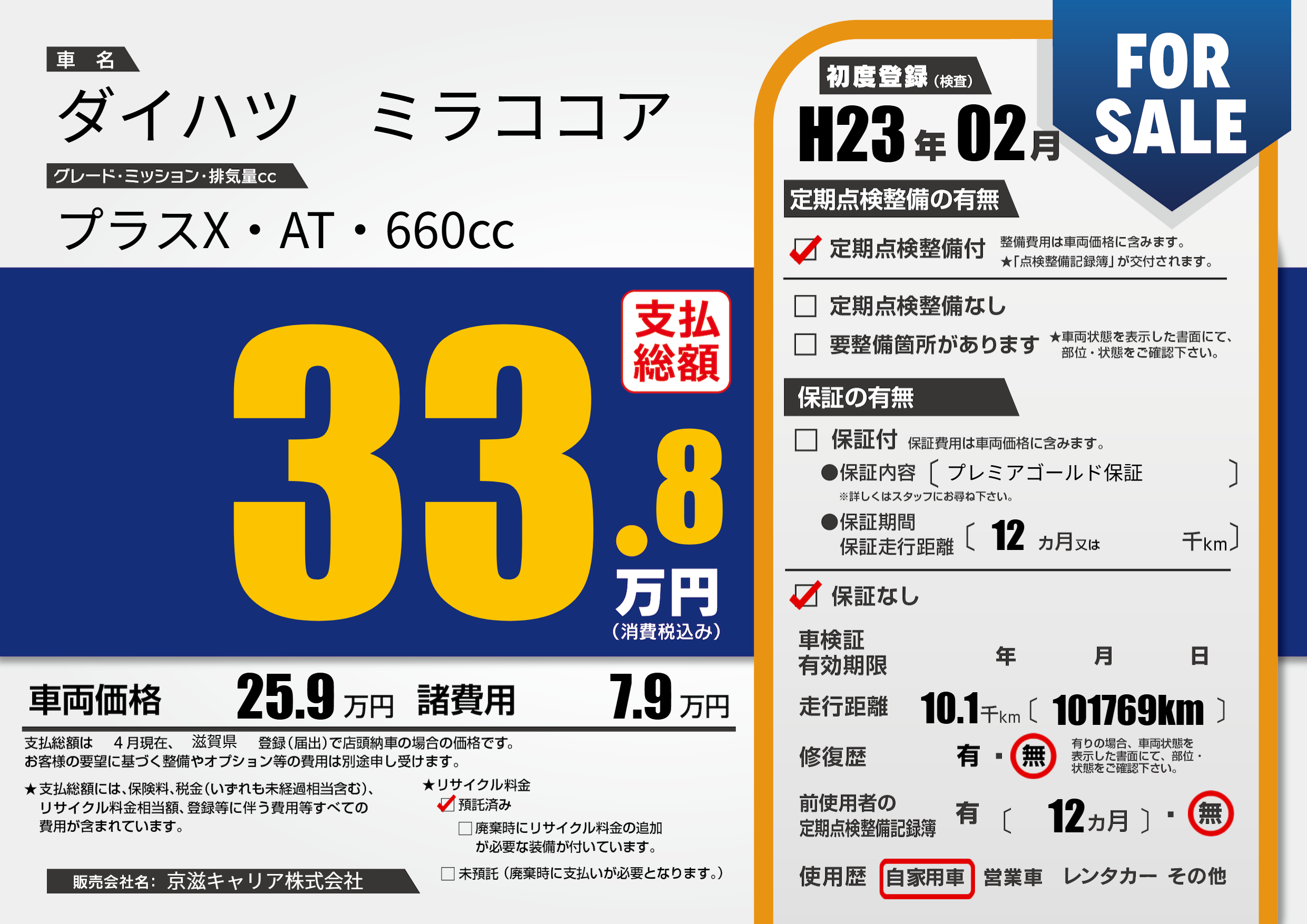 | 定期点検整備 | 定期点検整備あり | ||