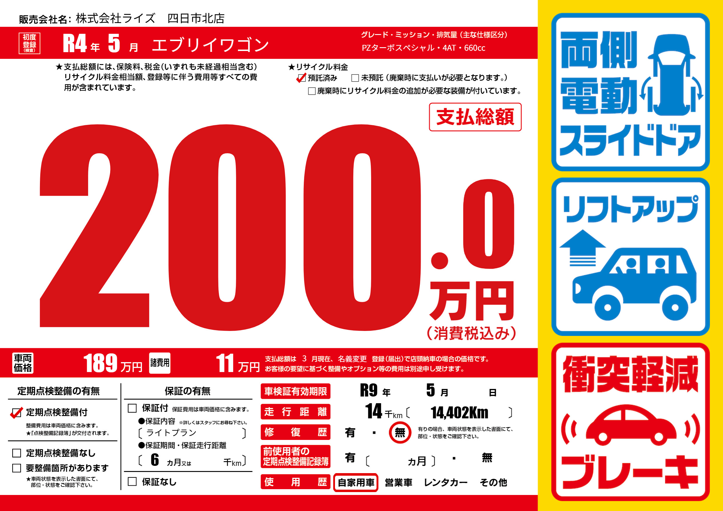 なし | 車検制限 | R9年5月---月 |