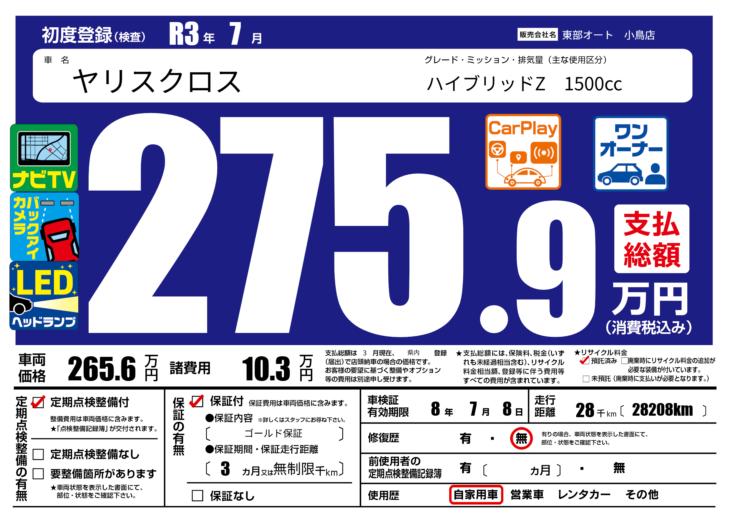 なし | 車検制限 | 8年7月8月 |