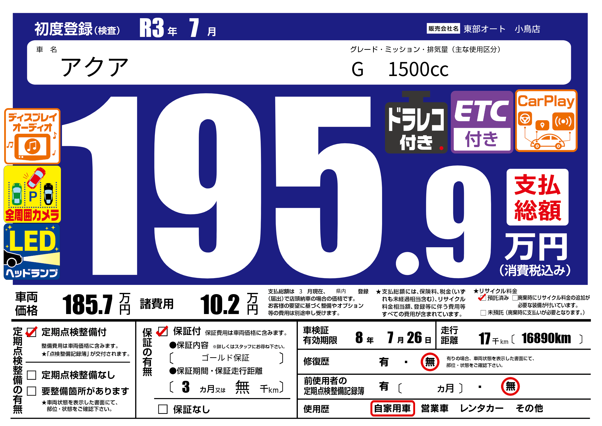 保証付き 保証内容( ゴールド保証) 3ヶ月または(無)千kmまで |