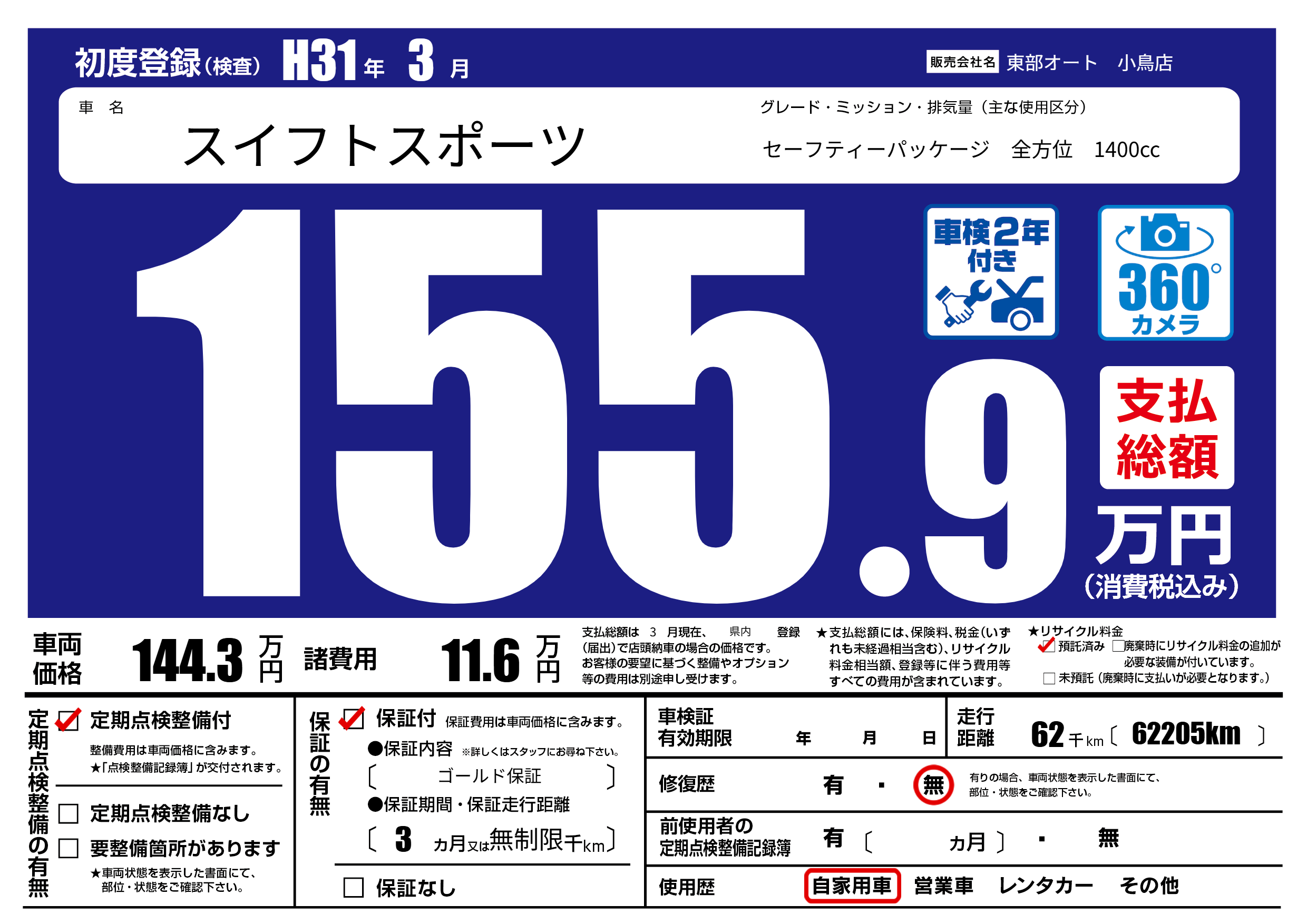 保証付き 保証内容( ゴールド保証) 3ヶ月または無制限千km |