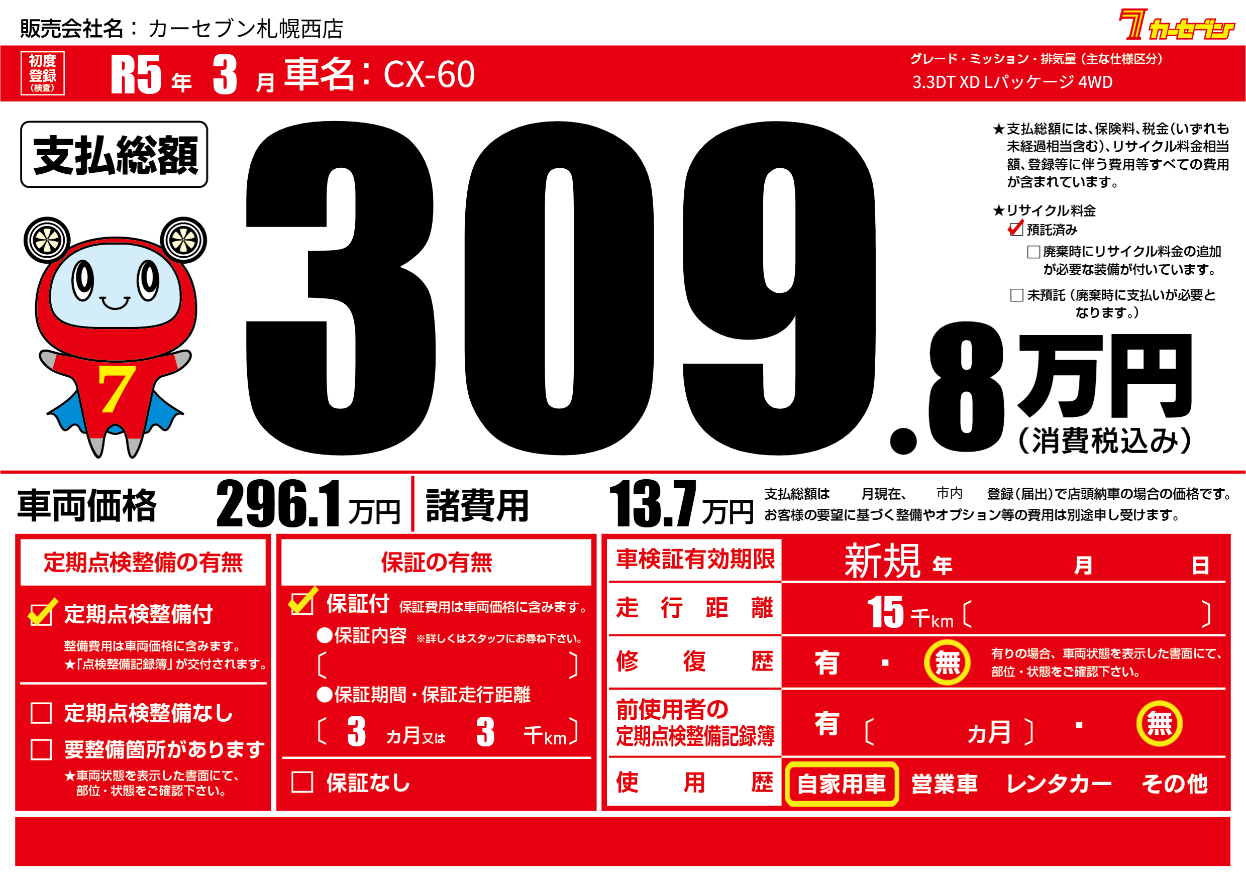 | 定期点検整備 | 定期点検整備あり | ||