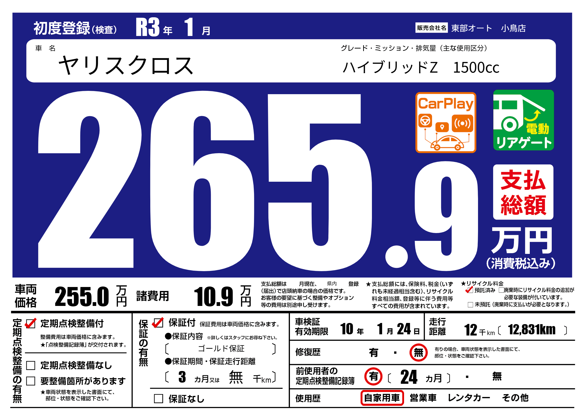 保証付き 保証内容( ゴールド保証) 3ヶ月または(無)千kmまで |