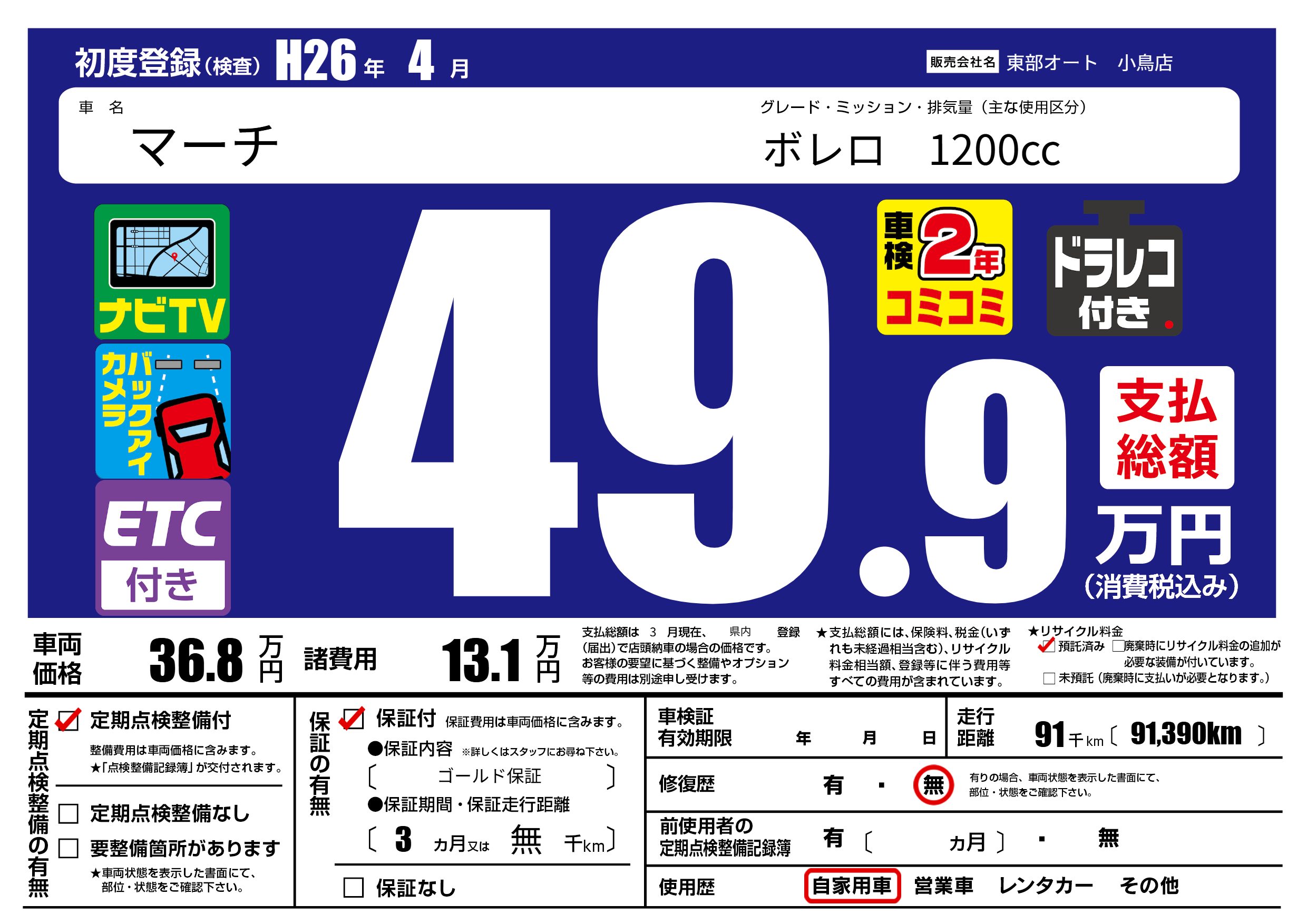 保証付き 保証内容( ゴールド保証) 3ヶ月または(無)千kmまで |