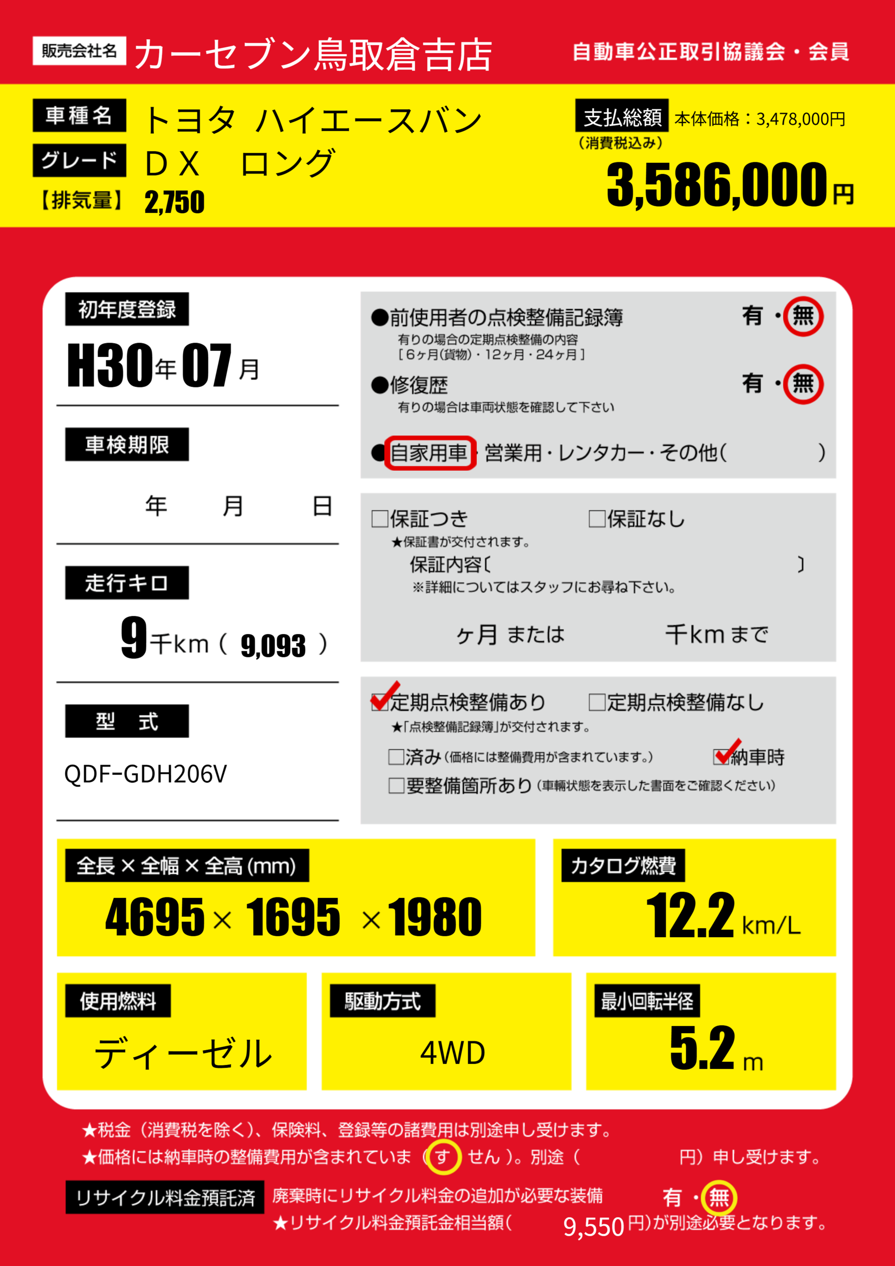 | 走行キロ | 0.9万km | ||