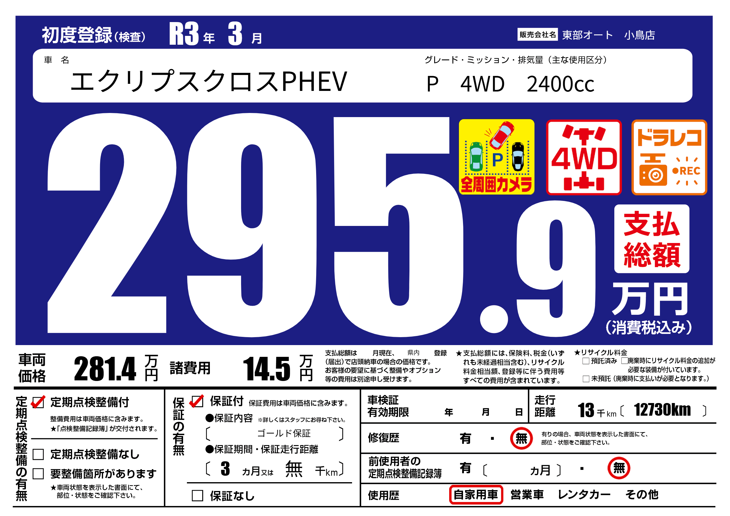 保証付き 保証内容( ゴールド保証) 3ヶ月または(無)千kmまで |