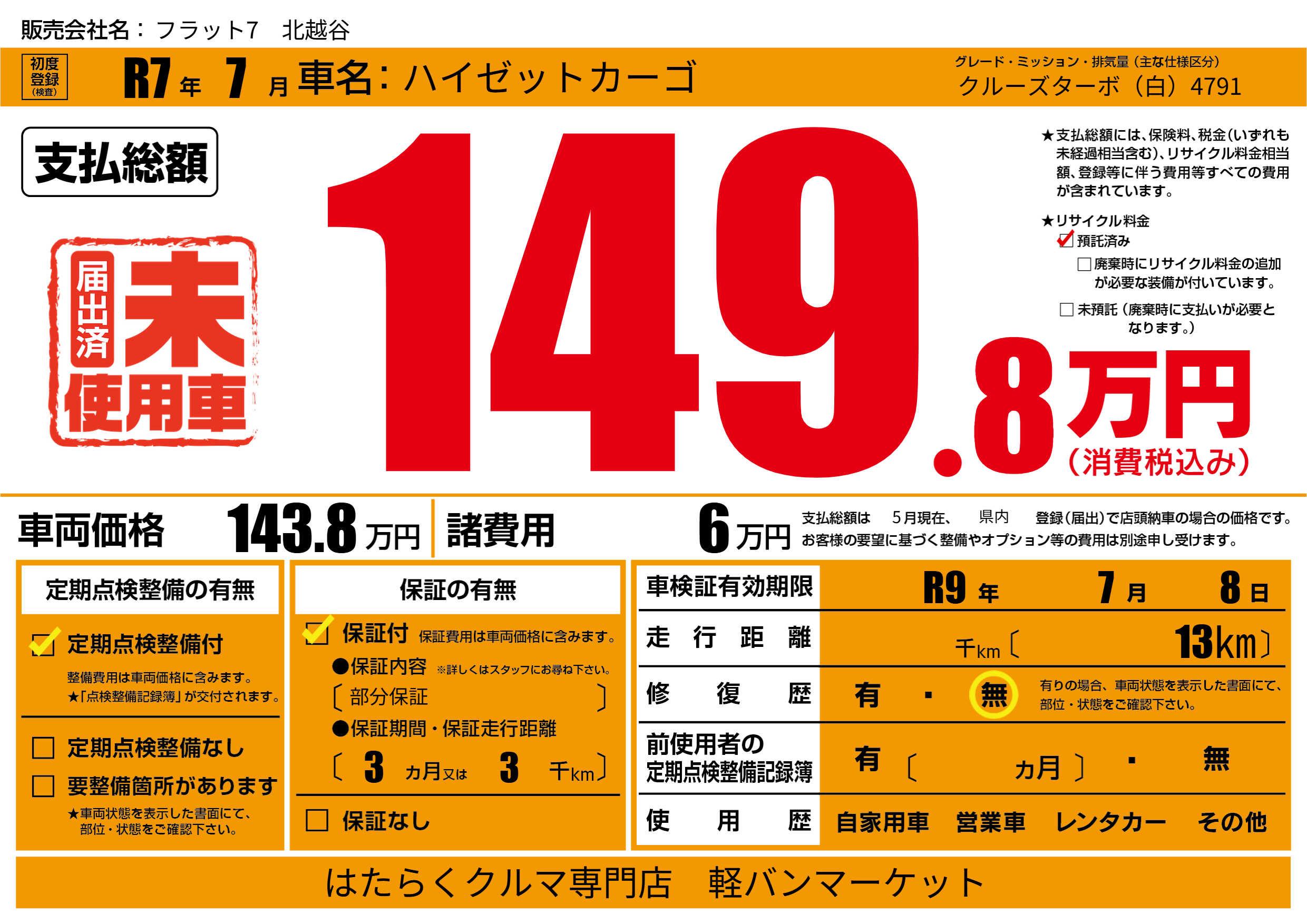 なし | 車検制限 | R9年7月8月 |