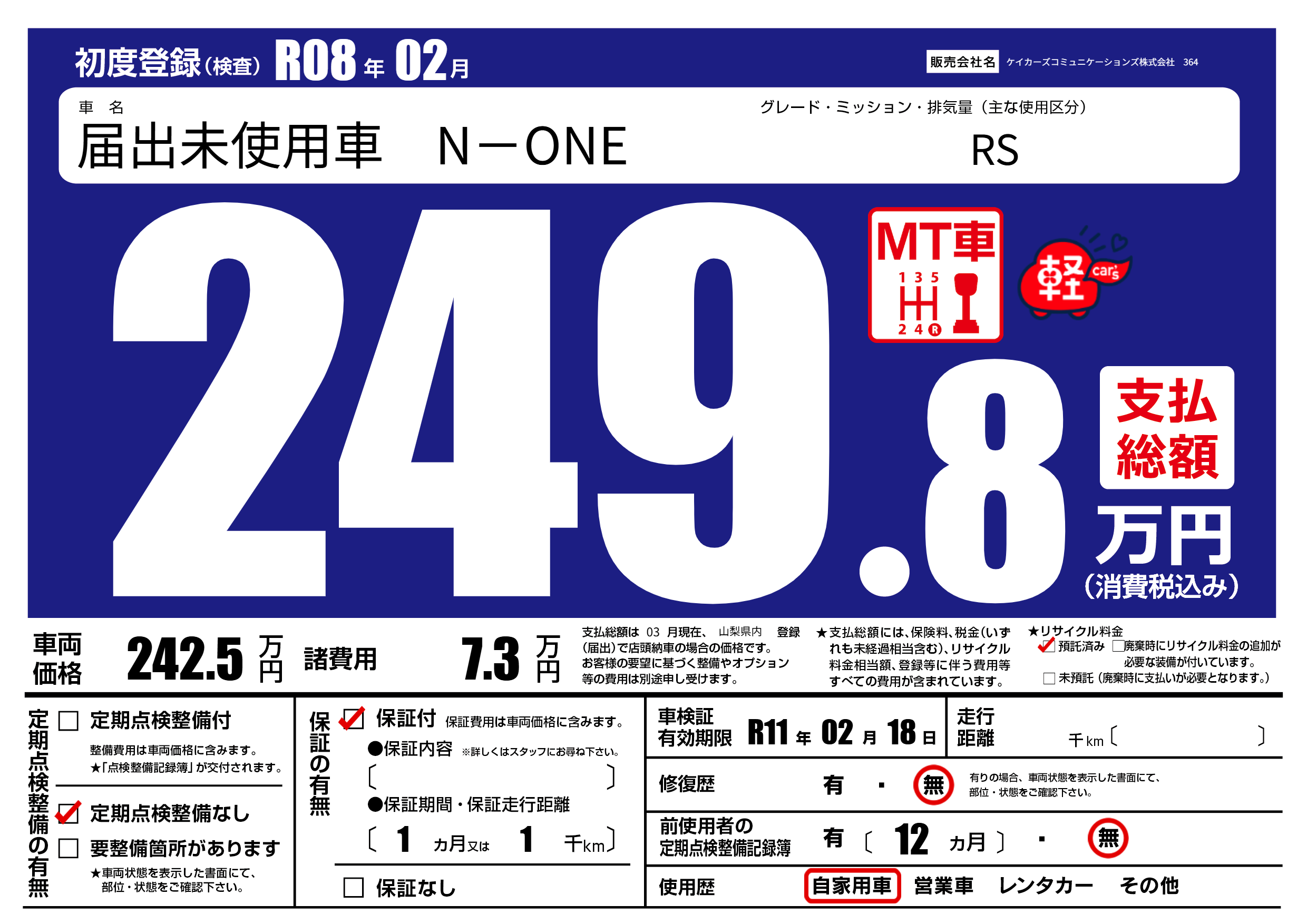 | 定期点検整備 | 定期点検整備なし | ||
