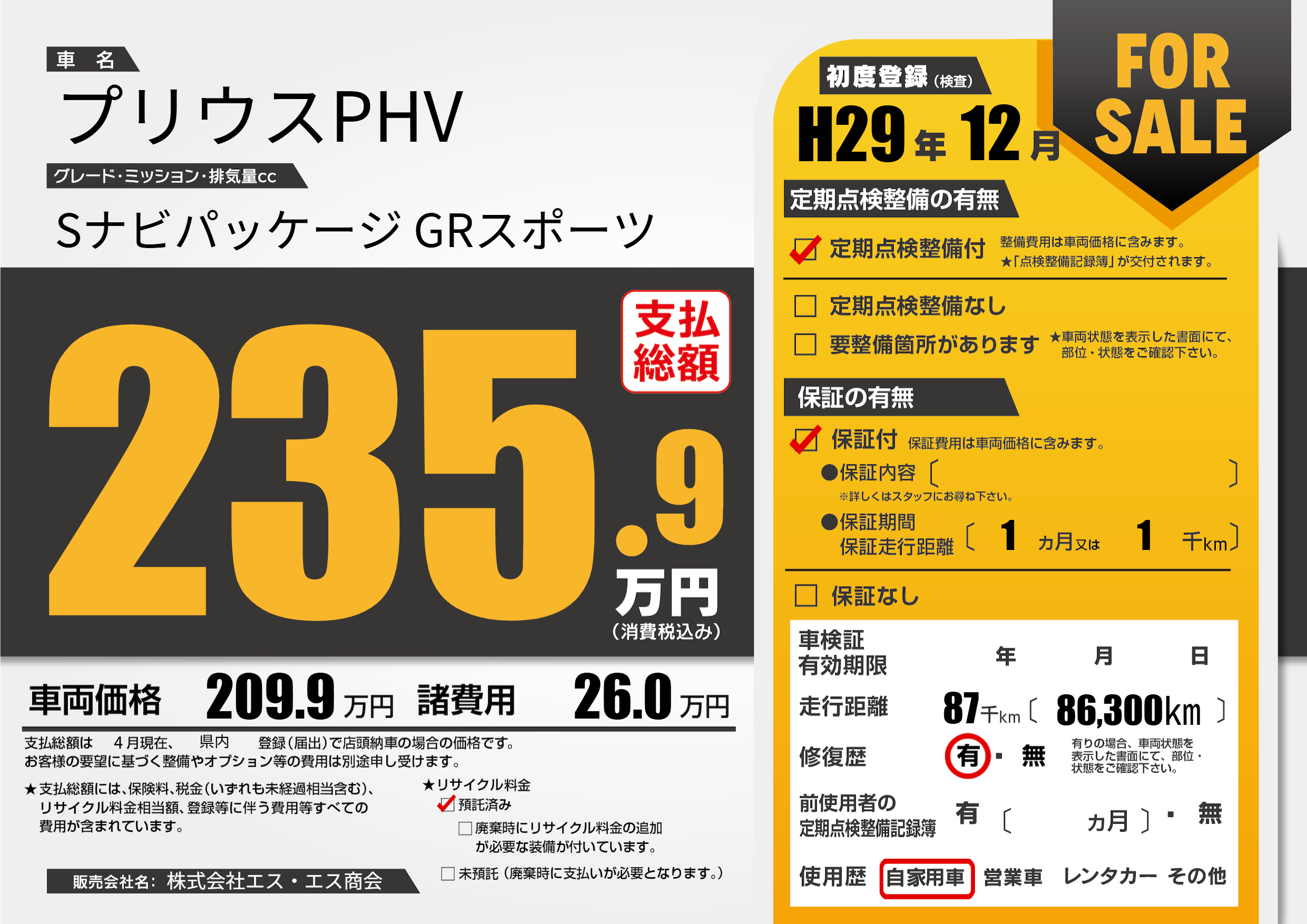 | 初年度登録 | H29年12月 | ||