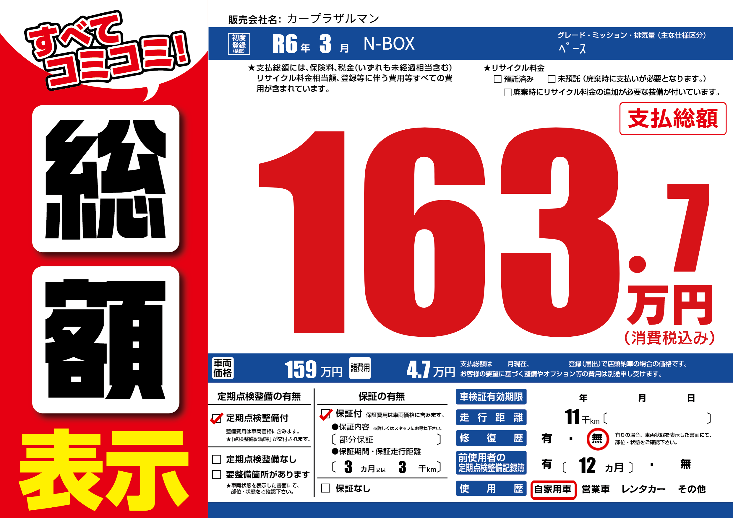 | 車名 | N-BOX | グレード ミッション 排気量 |