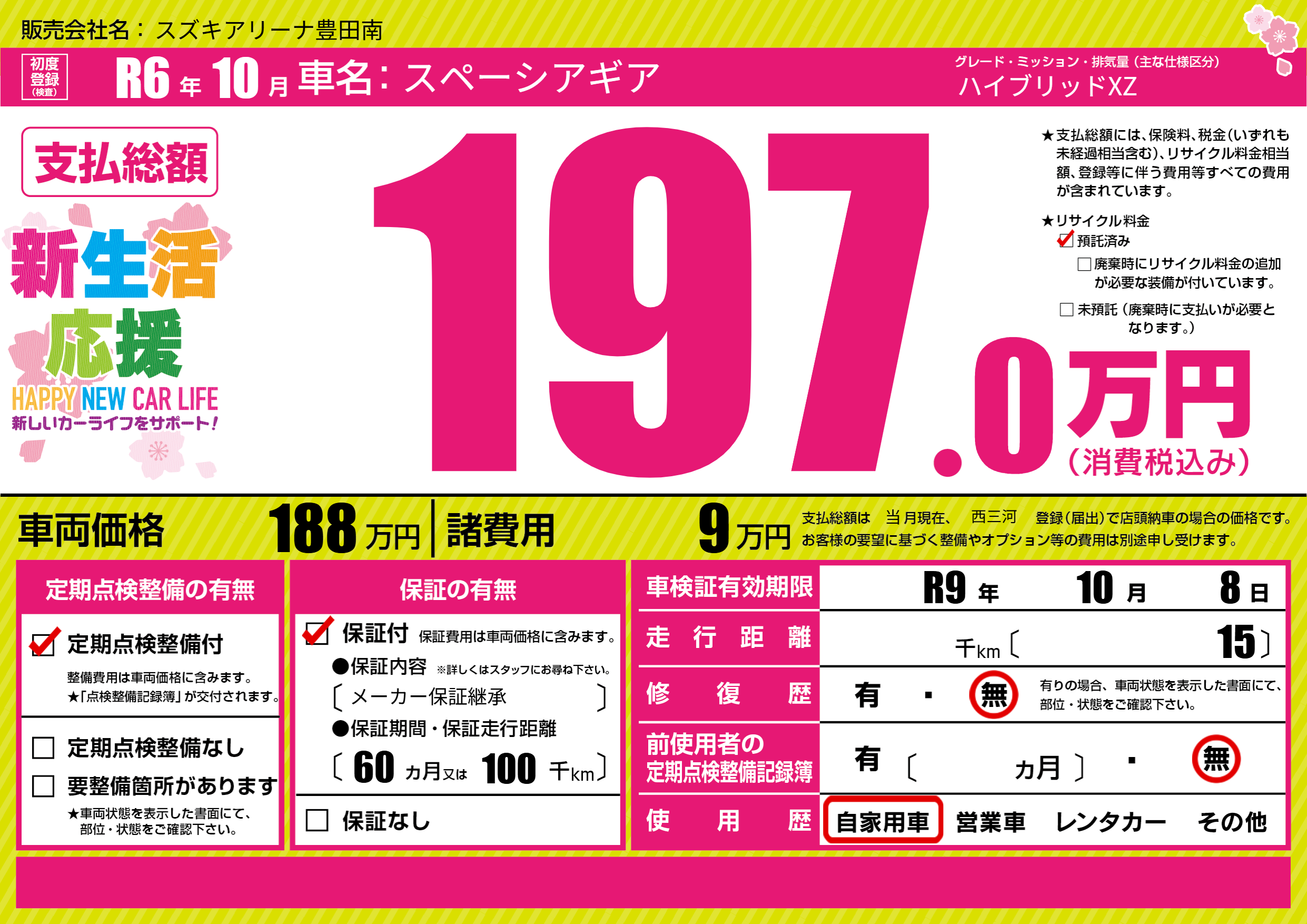 | 走行キロ | - | 初年度登録 | R6年10月 |