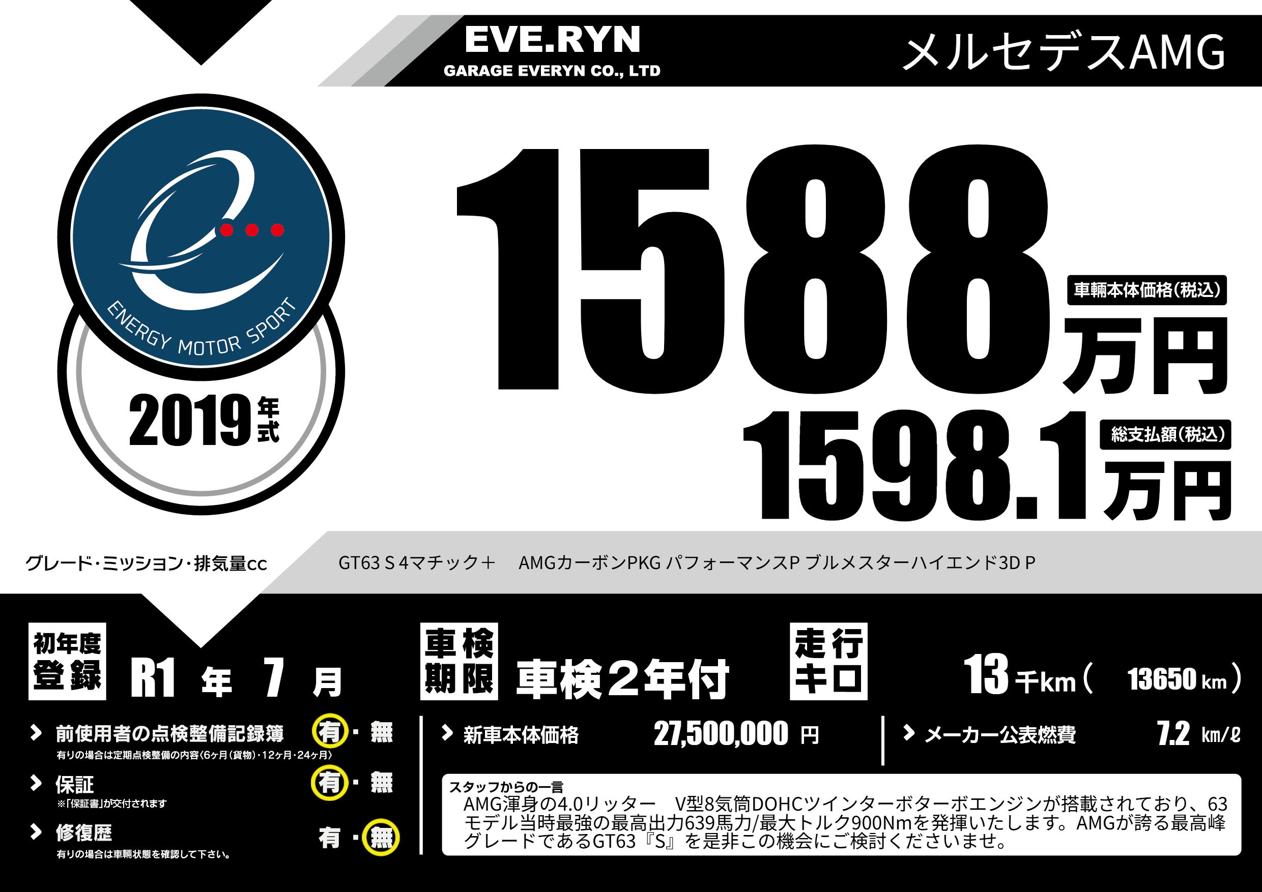 | 車名 | メルセデスAMG | グレード ミッション 排気量 |