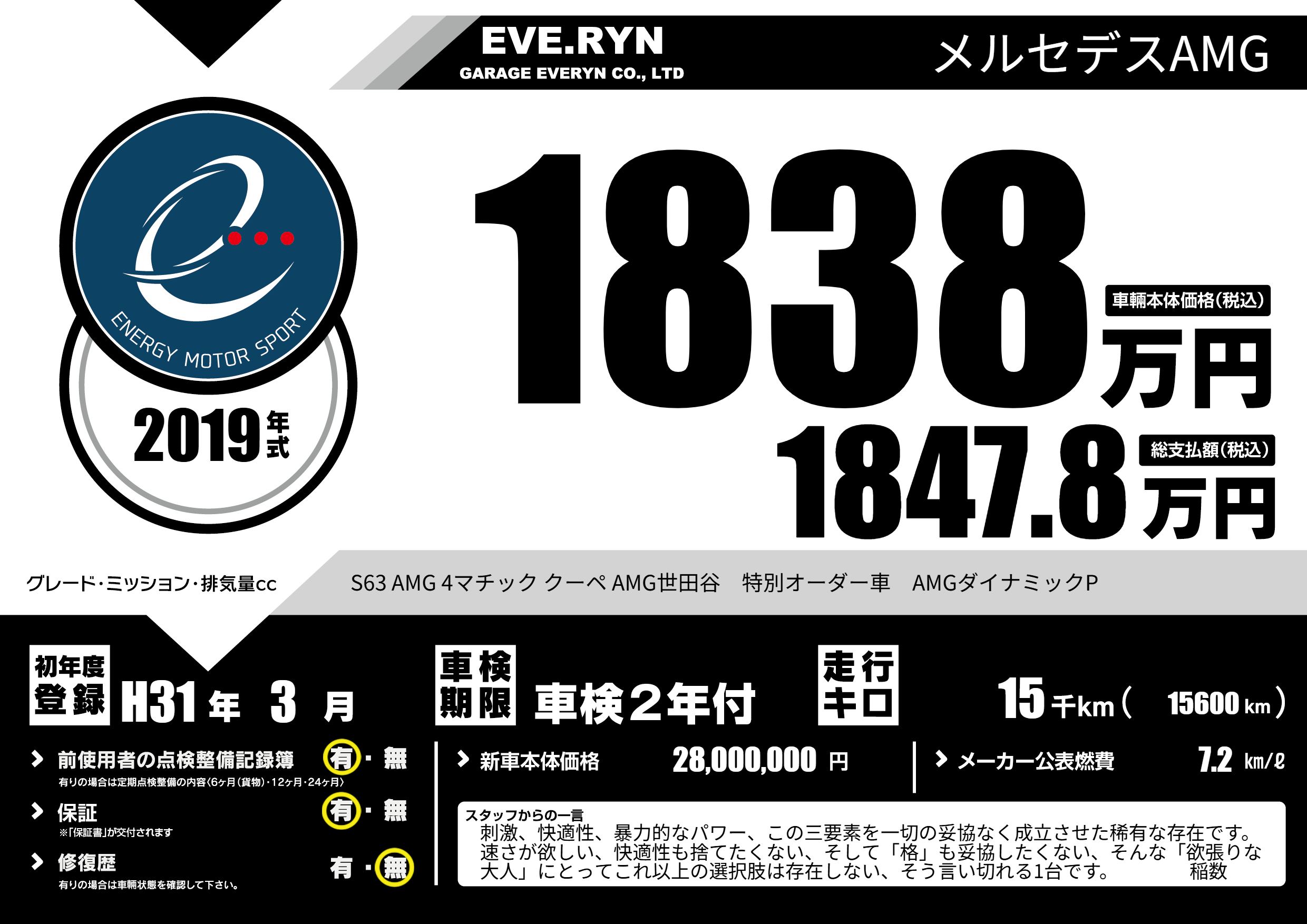 S63 AMG 4マチック クーペ AMG世田谷 特別オーダー車 AMGダイナミックP |