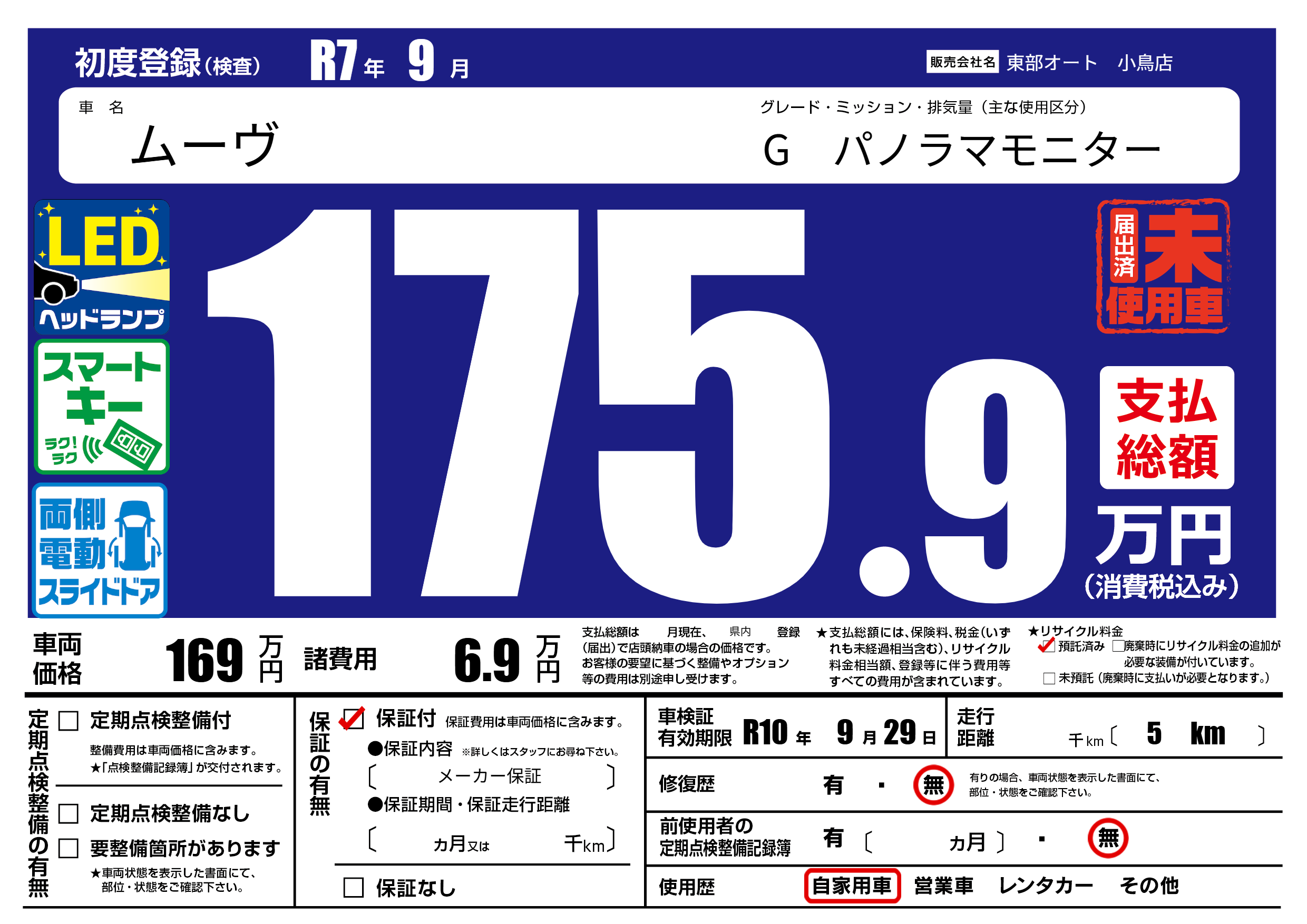 車検制限 R10年 9月 29日