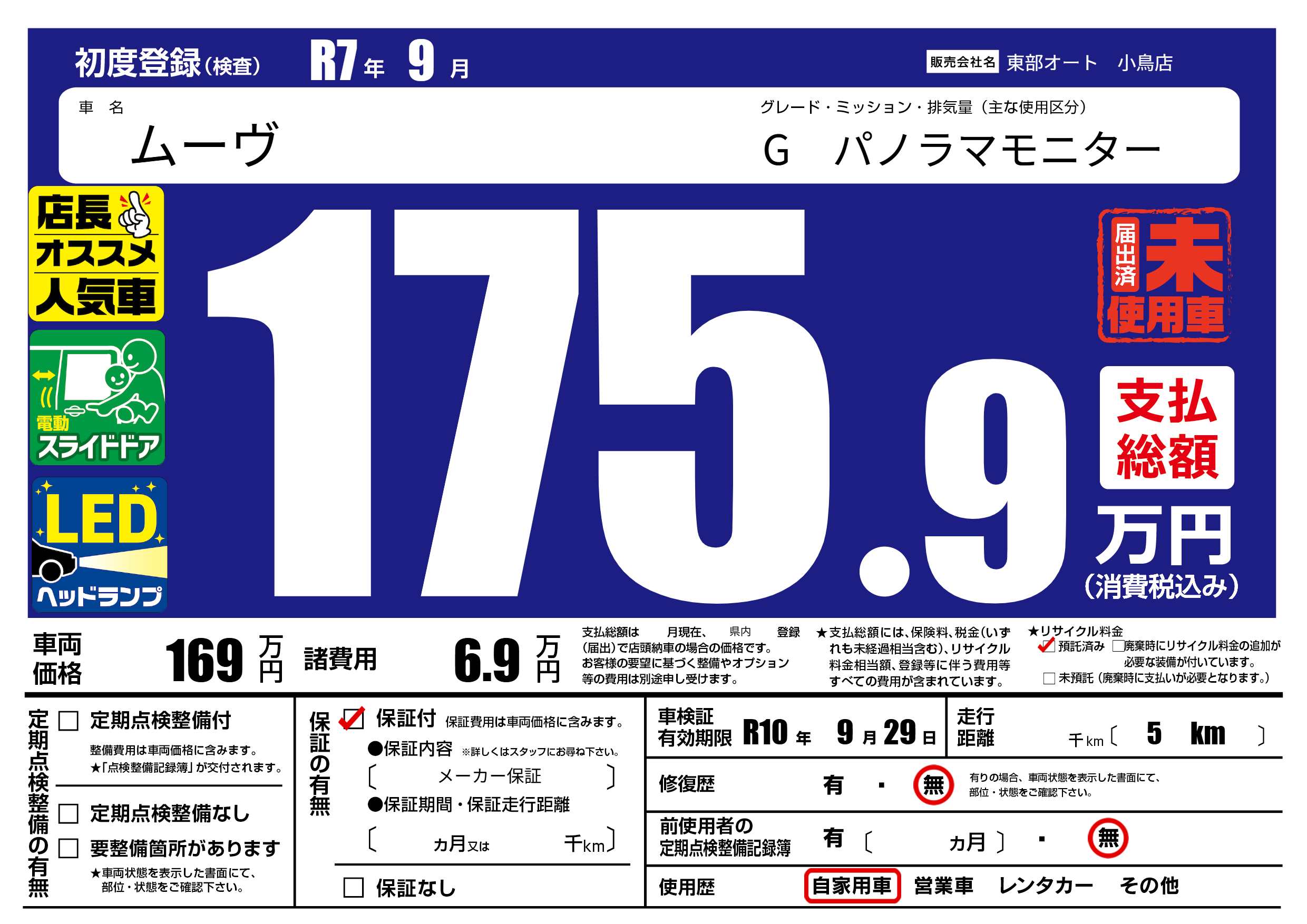 なし | 車検制限 | R10年9月29月 |