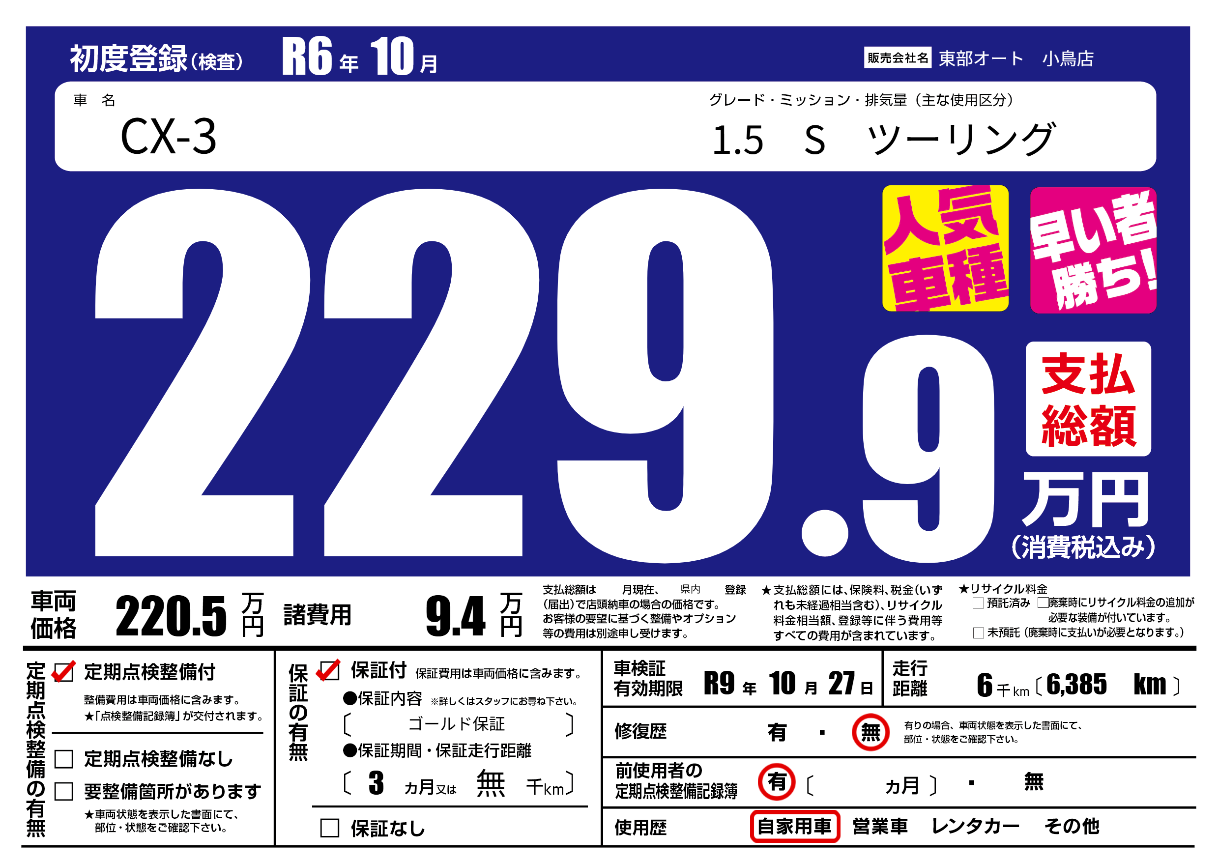 保証付き 保証内容( ゴールド保証) 3ヶ月または(無)千kmまで |