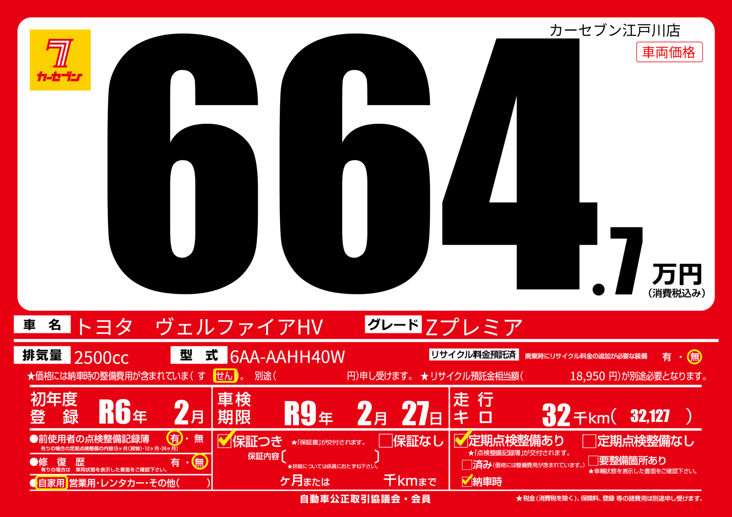 | 車検制限 | R9年 2月 27日 | ||