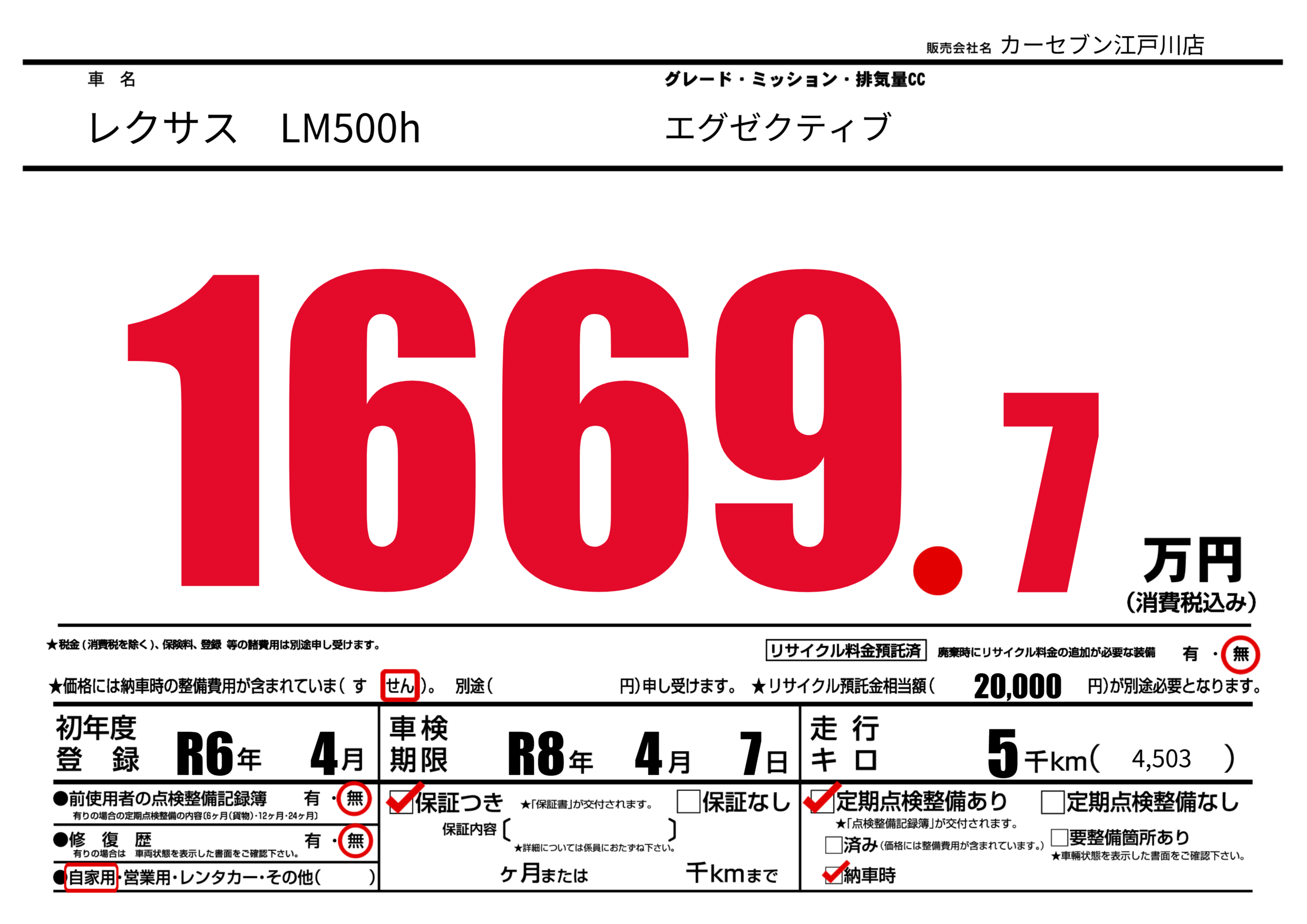 なし | 車検制限 | R8年4月7月 |