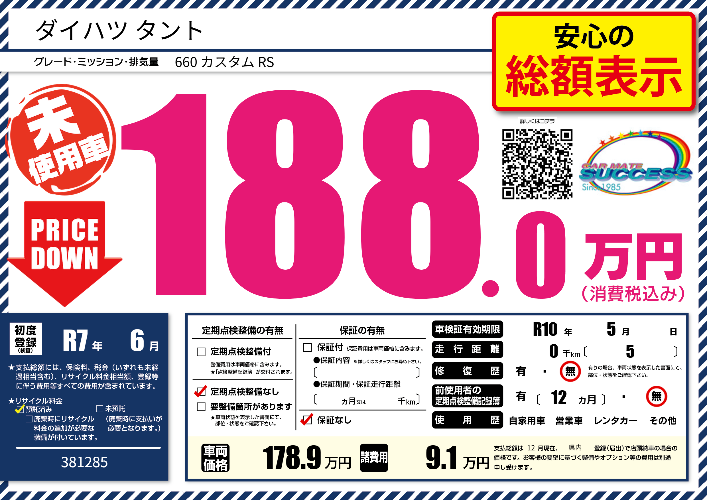 | 走行キロ | - | 初年度登録 | R7年6月 |