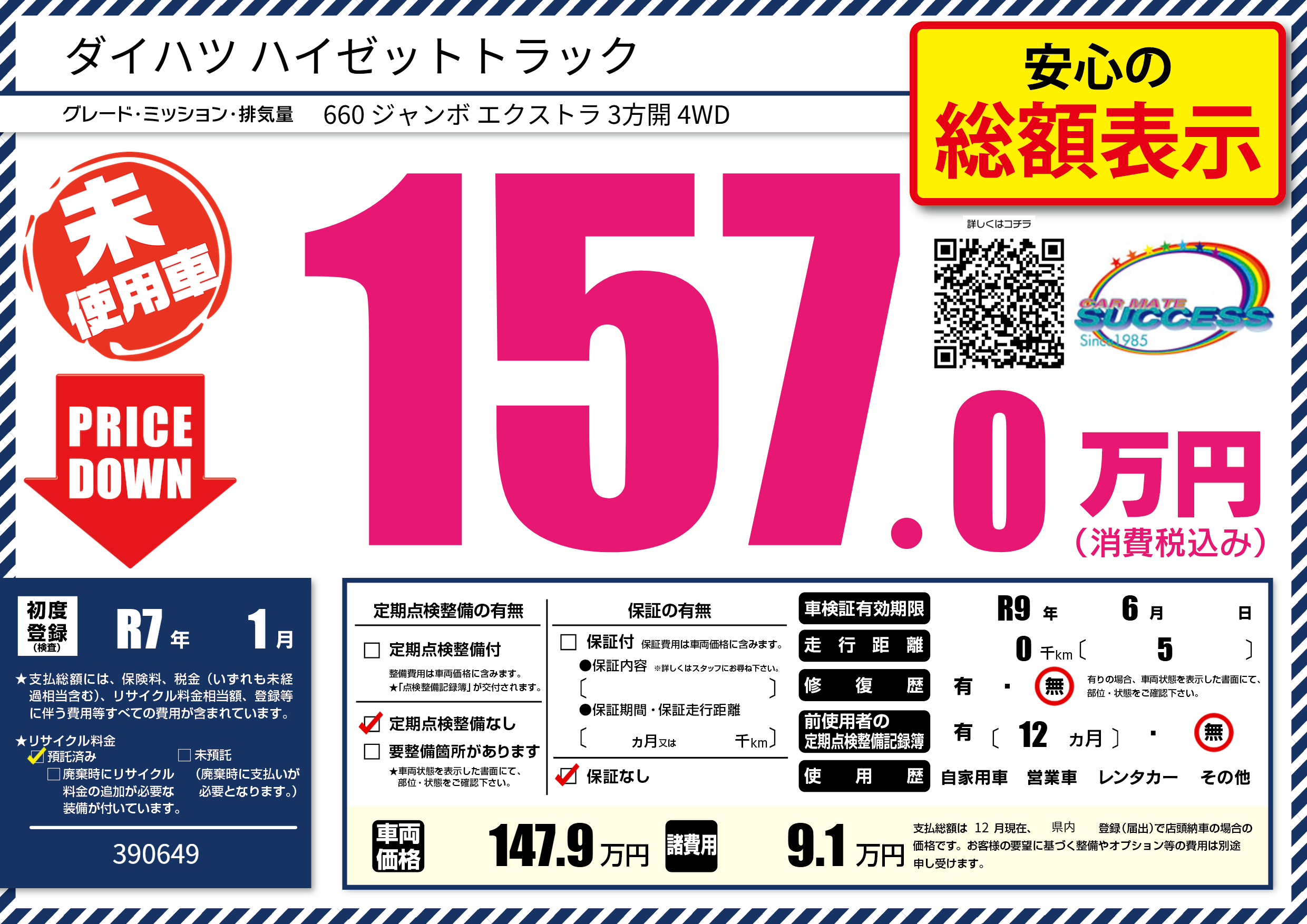 | 走行キロ | - | 初年度登録 | R7年1月 |