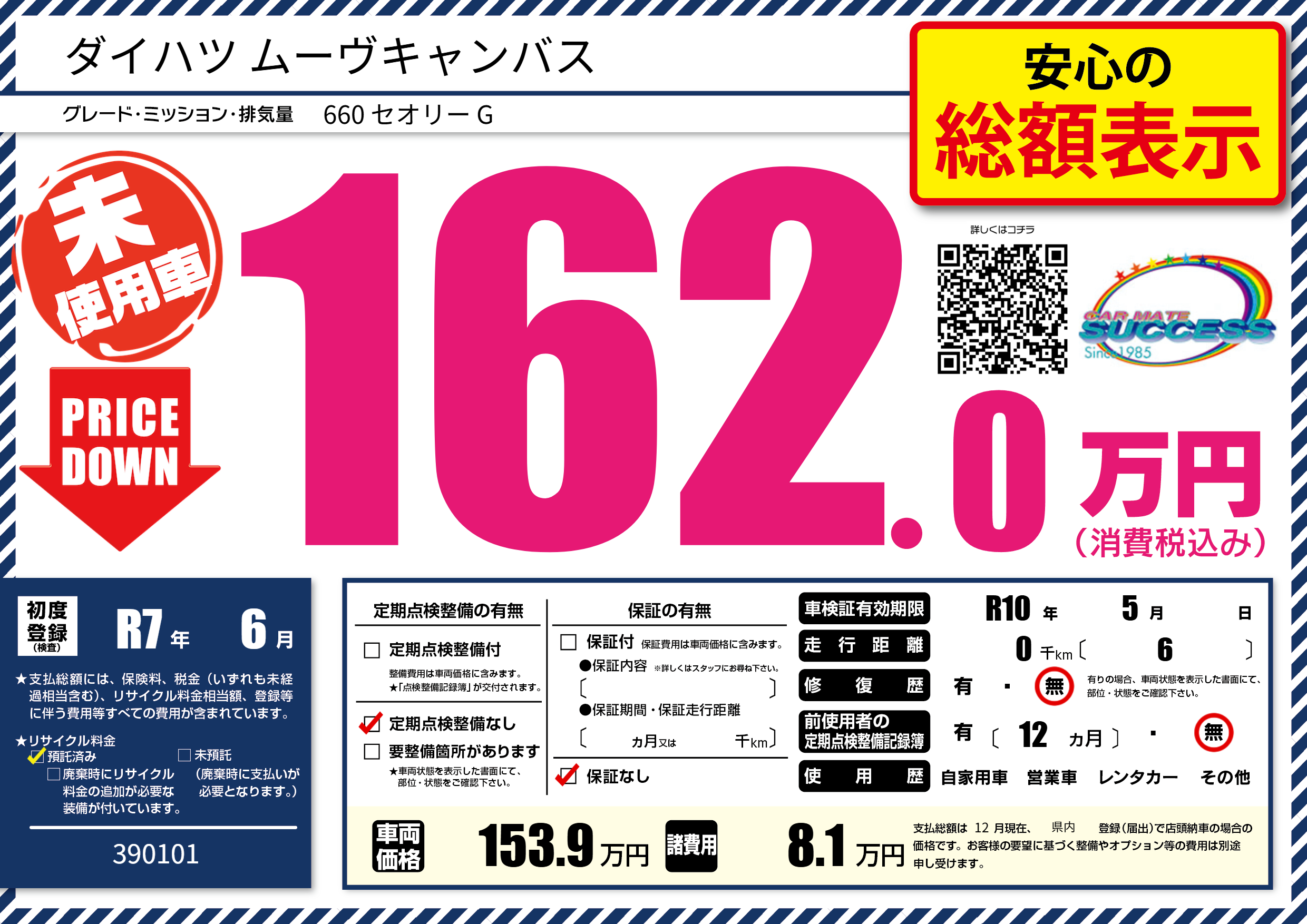 | 走行キロ | - | 初年度登録 | R7年6月 |