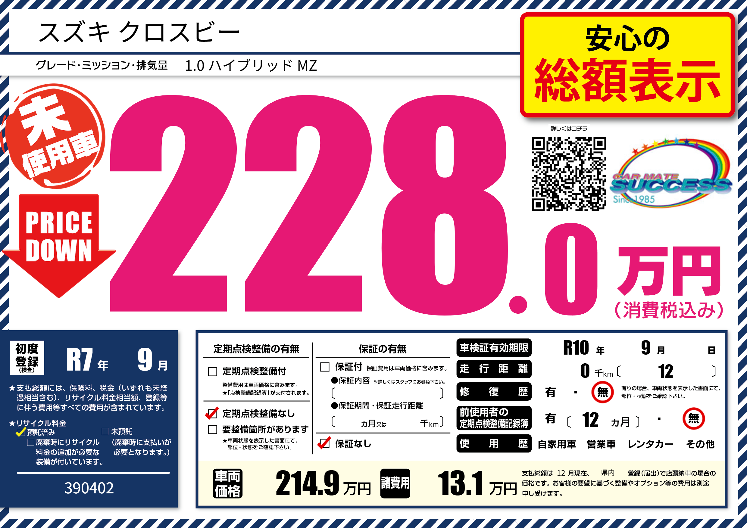 | 車検制限 | R10年 9月 - 日 | ||