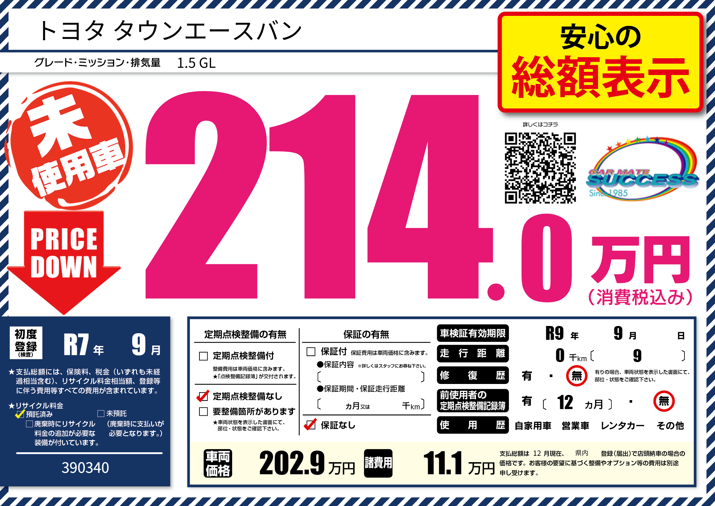| 車名 | トヨタ タウンエースバン | グレード ミッション 排気量 |