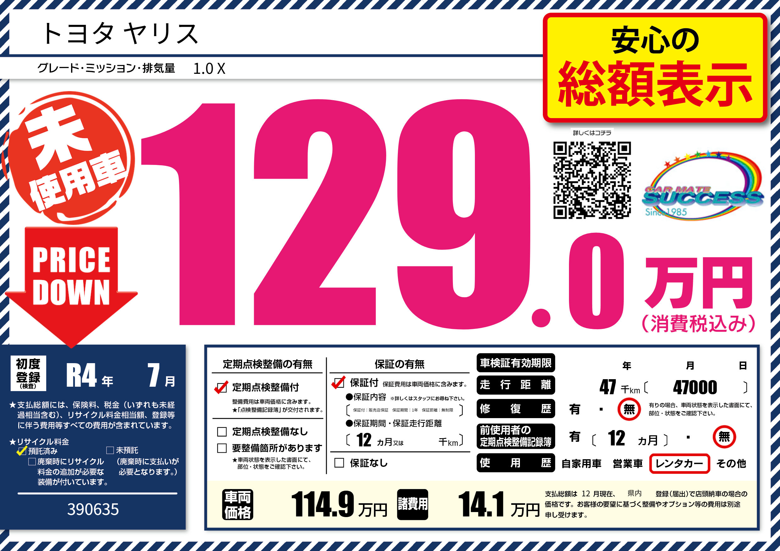 | 走行キロ | 4.7万km | 初年度登録 | R4年7月 |