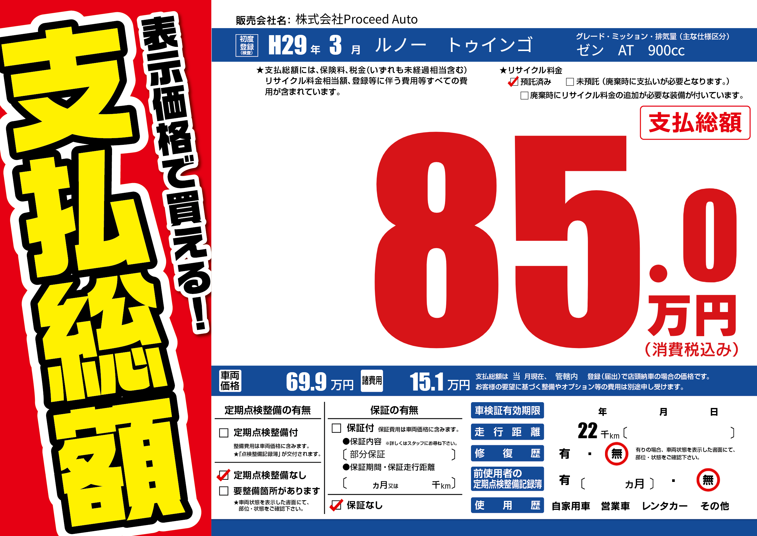| 定期点検整備 | 定期点検整備なし | ||