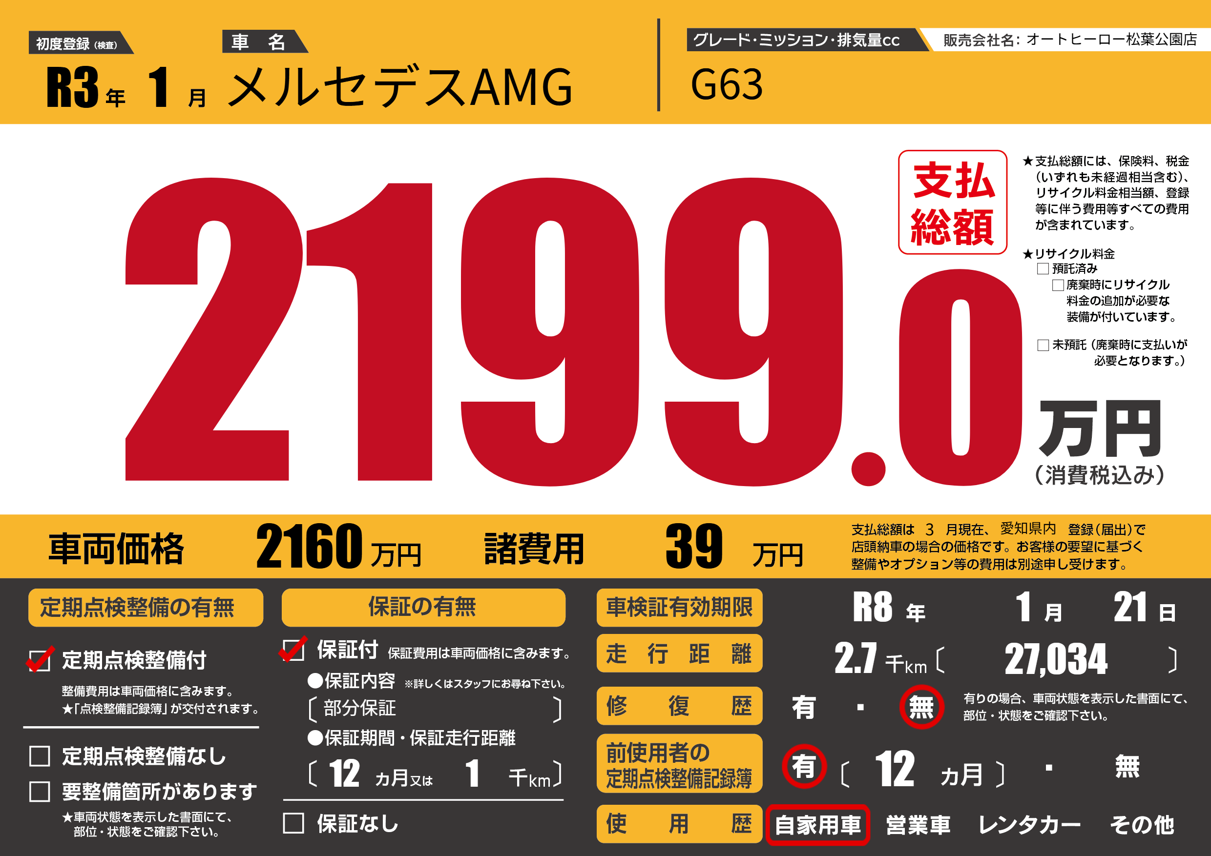 | 定期点検整備 | 定期点検整備あり | ||