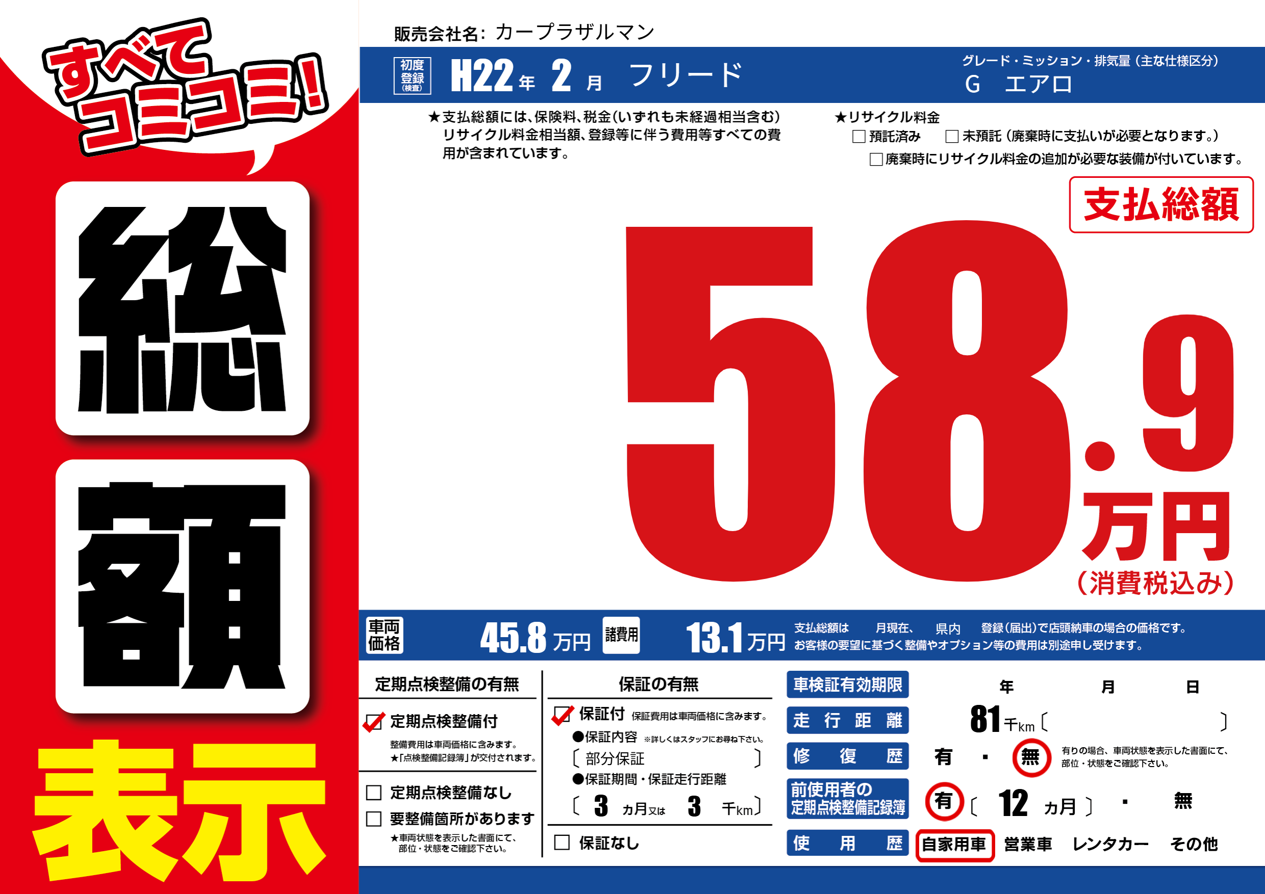 | 走行キロ | 8.1万km | ||