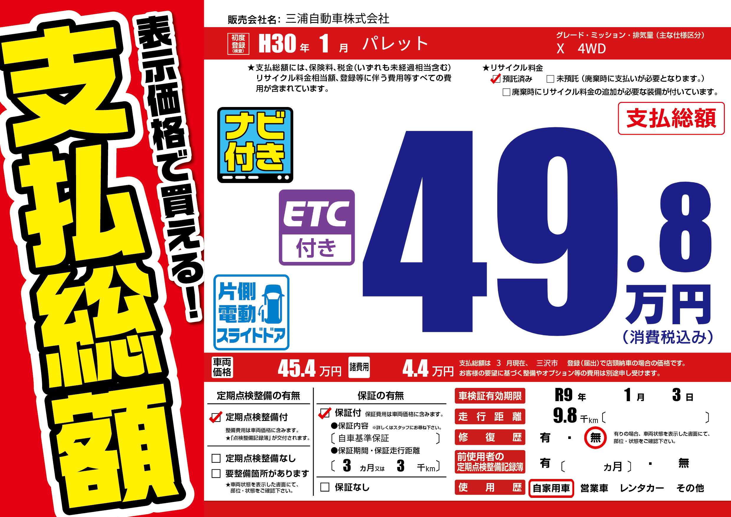 なし | 車検制限 | R9年1月3月 |