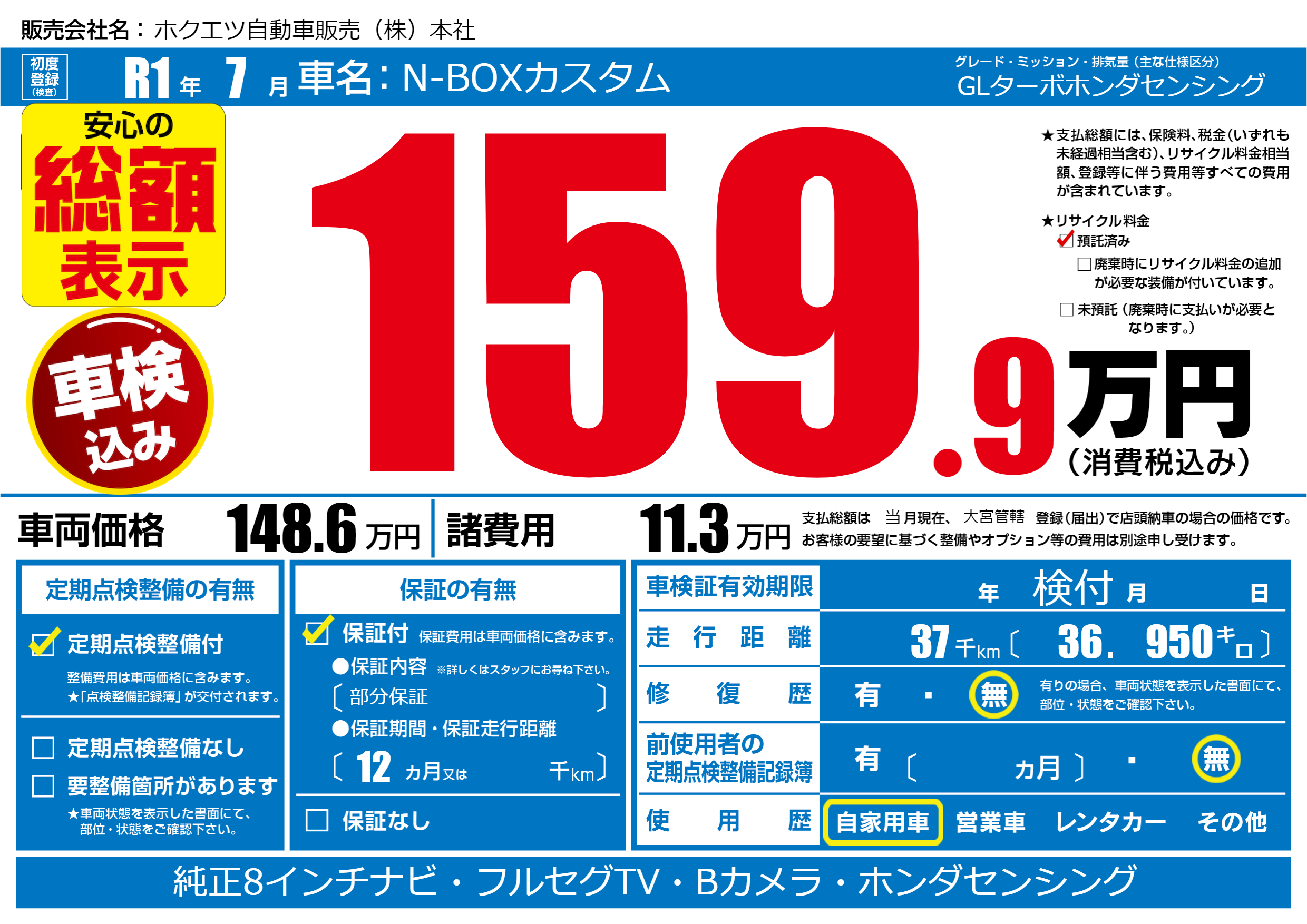 | 走行キロ | 3.7万km | 初年度登録 | R1年7月 |