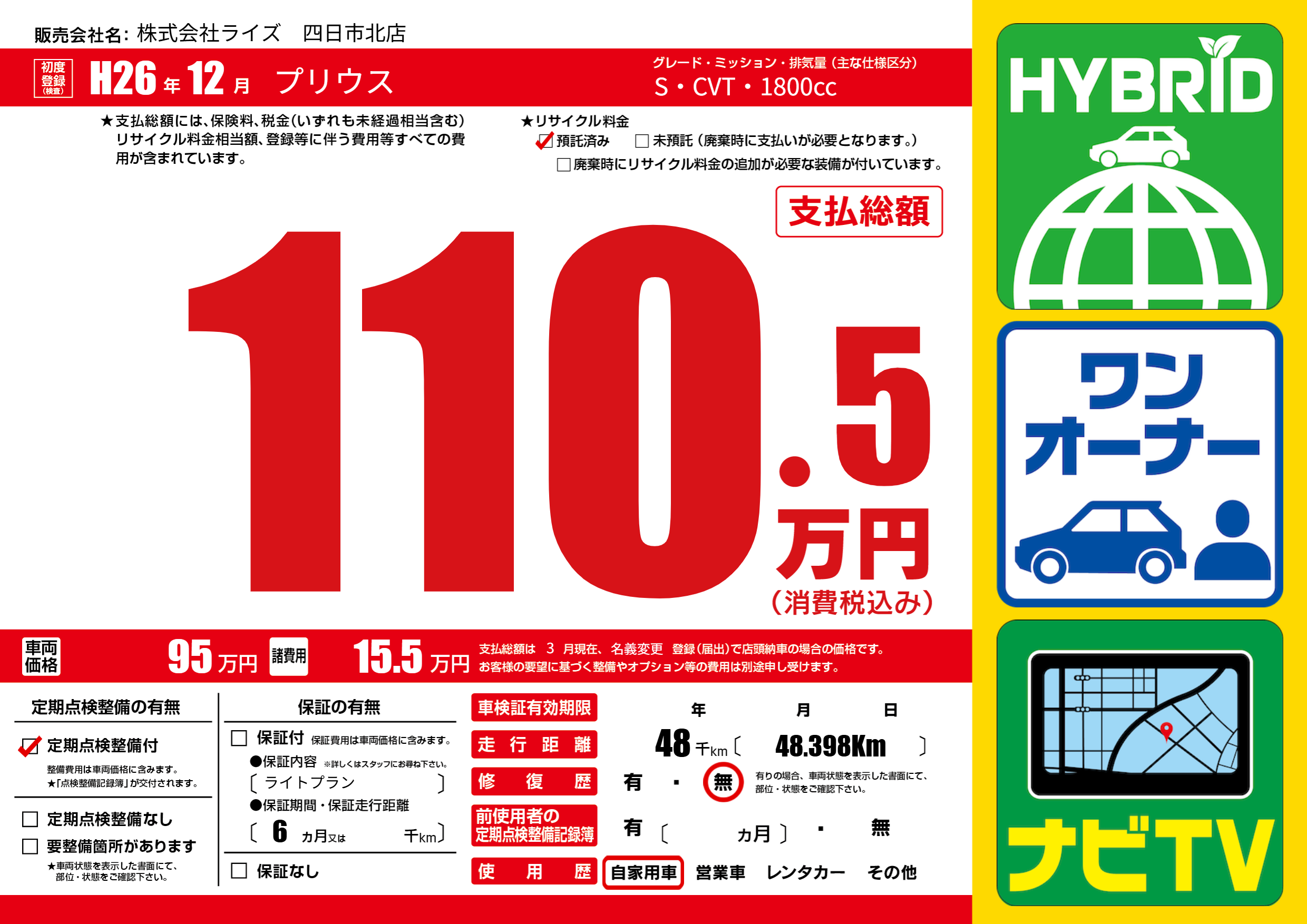 | 走行キロ | 4.8万km | ||