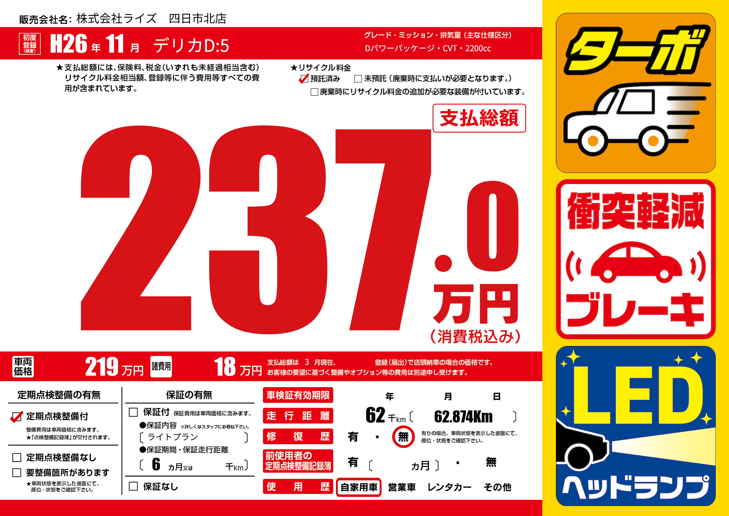 | 走行キロ | 6.2万km | ||