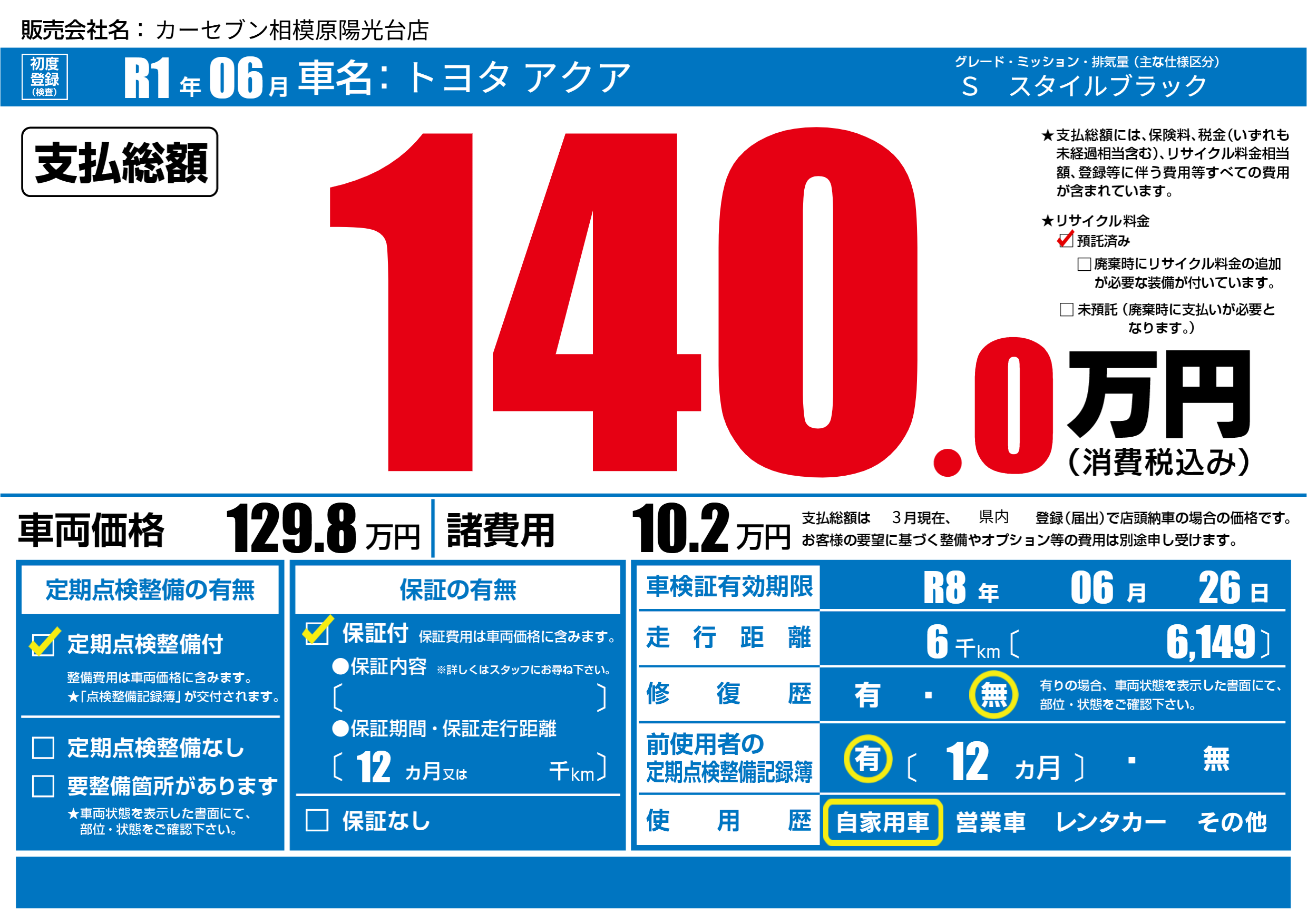 なし | 車検制限 | R8年06月26月 |