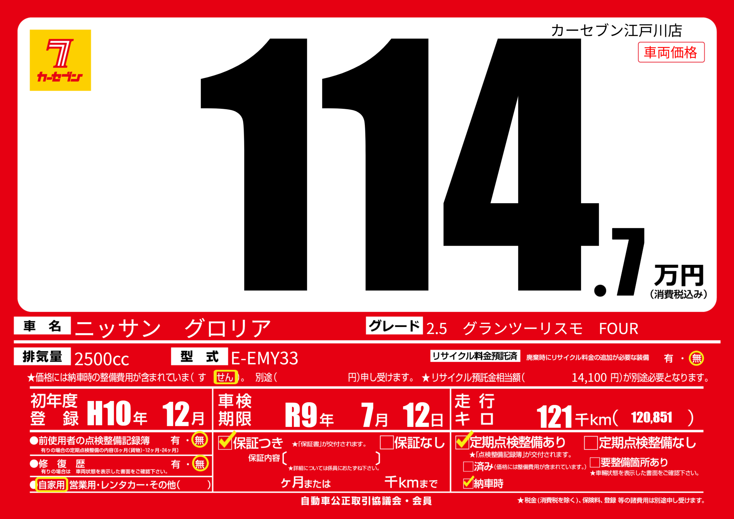 なし | 車検制限 | R9年7月12月 |
