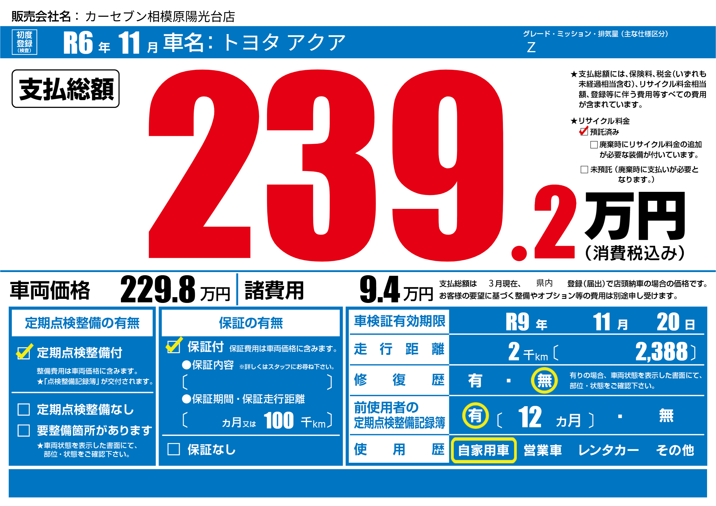 なし | 車検制限 | R9年11月20月 |