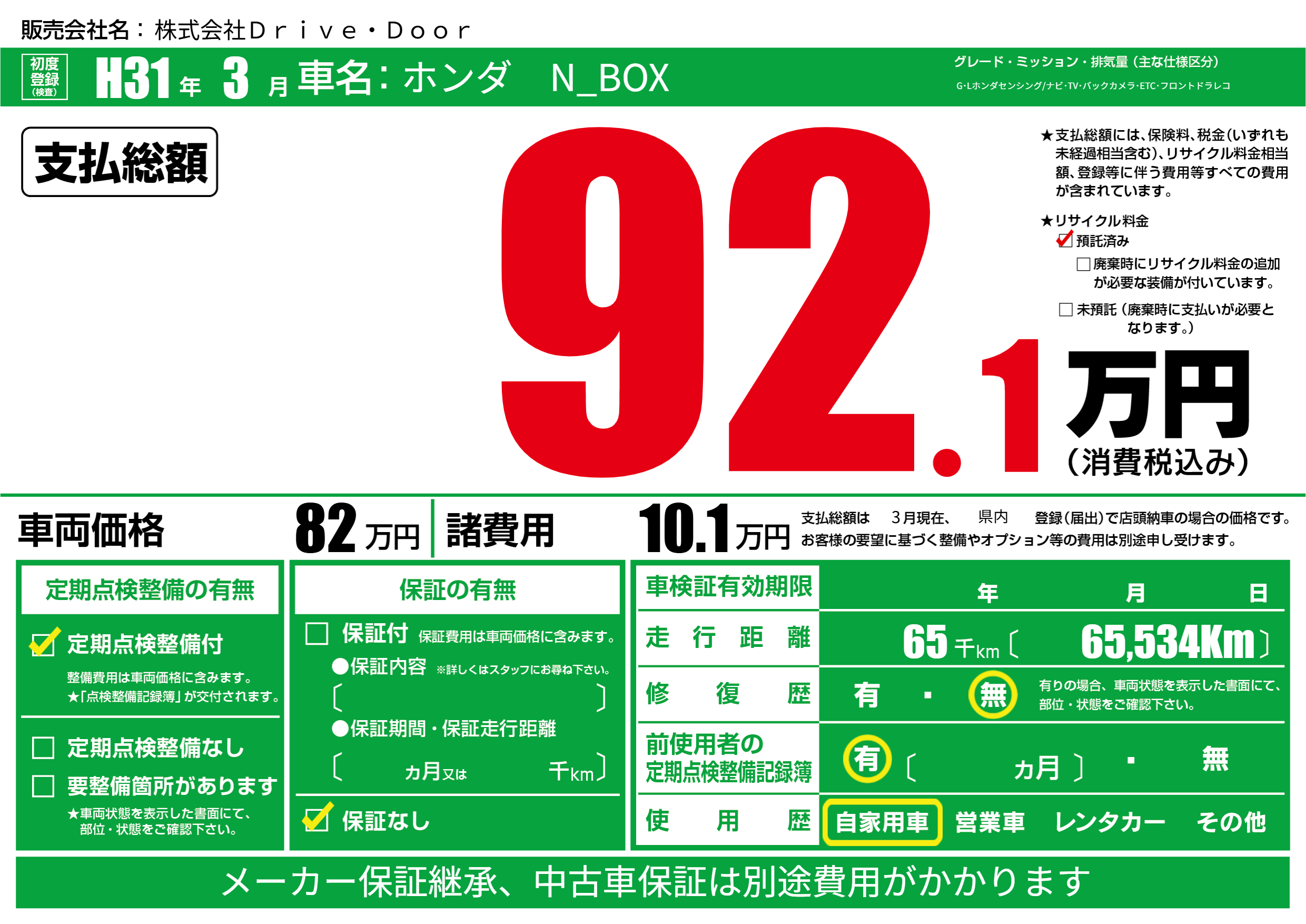 | 定期点検整備 | 定期点検整備あり | ||