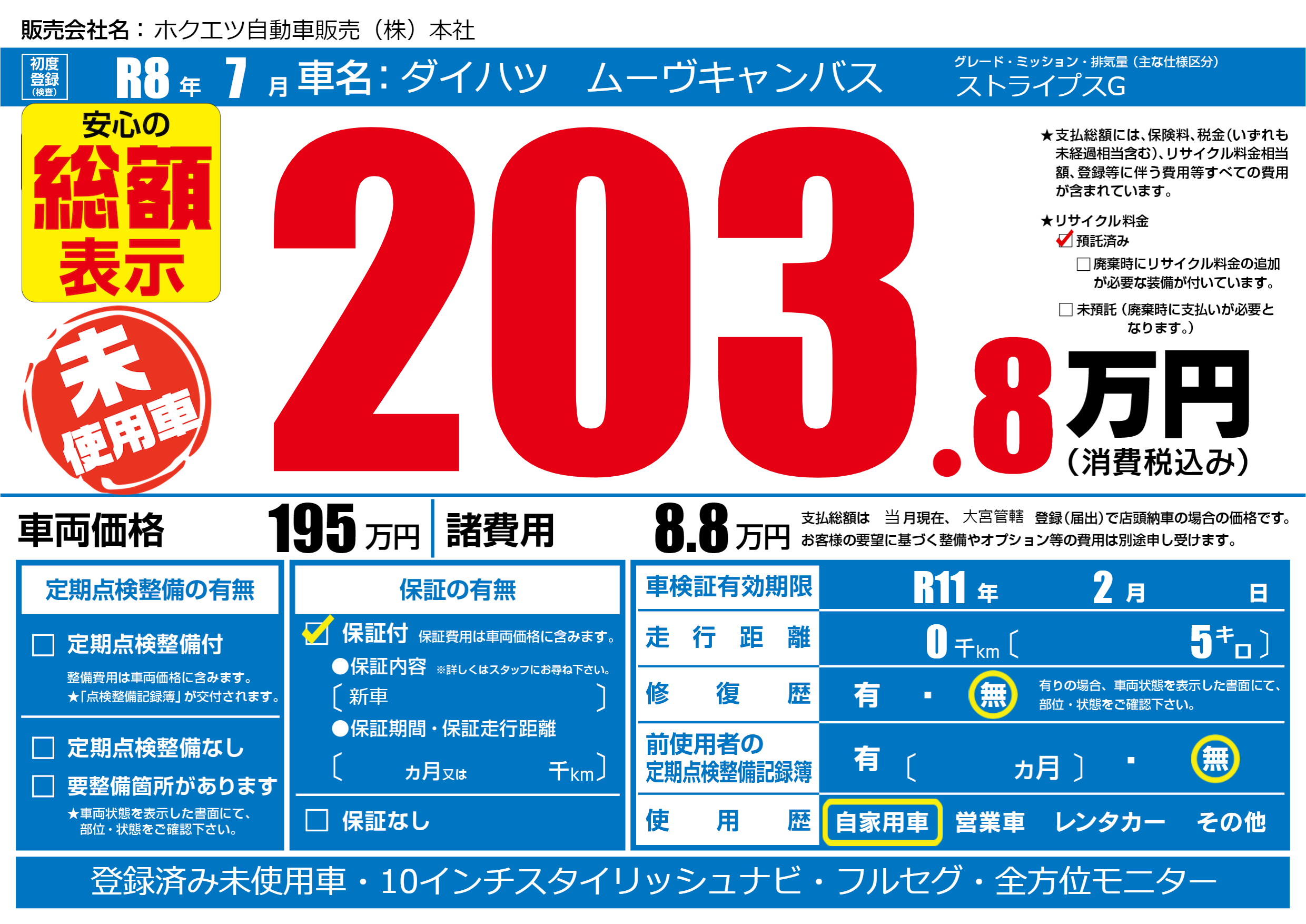| 走行キロ | - | 初年度登録 | R8年7月 |