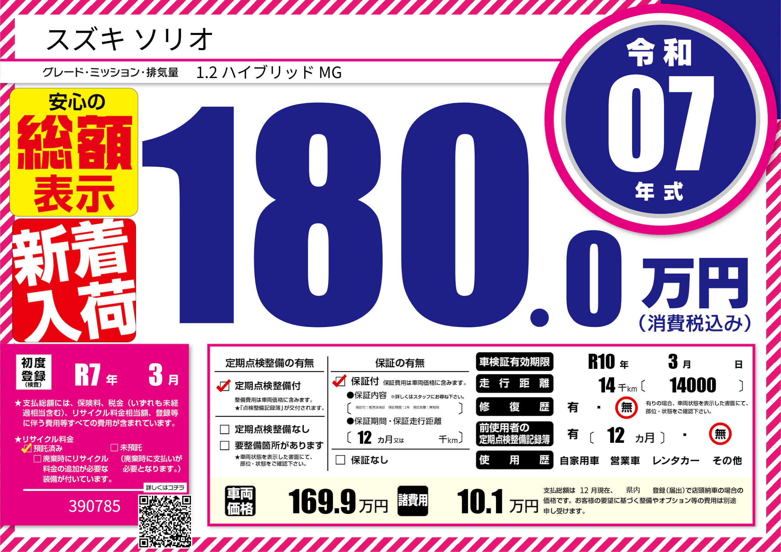 | 走行キロ | 1.4万km | 初年度登録 | R7年3月 |