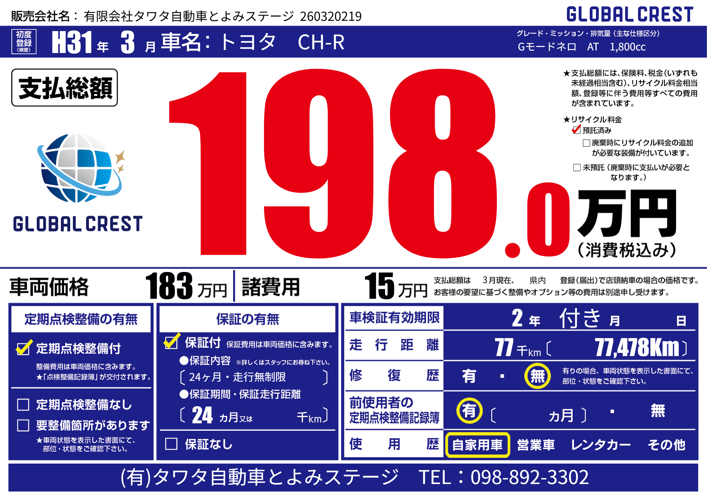 なし | 車検制限 | 2年付き月---月 |