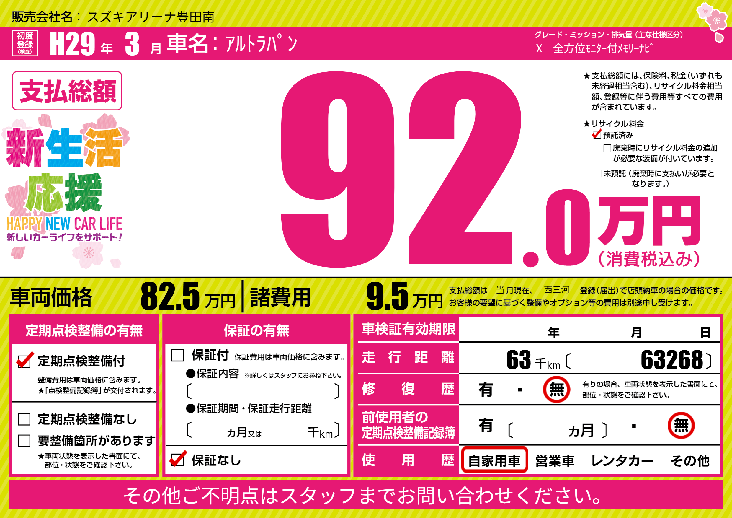 | 定期点検整備 | 定期点検整備あり | ||